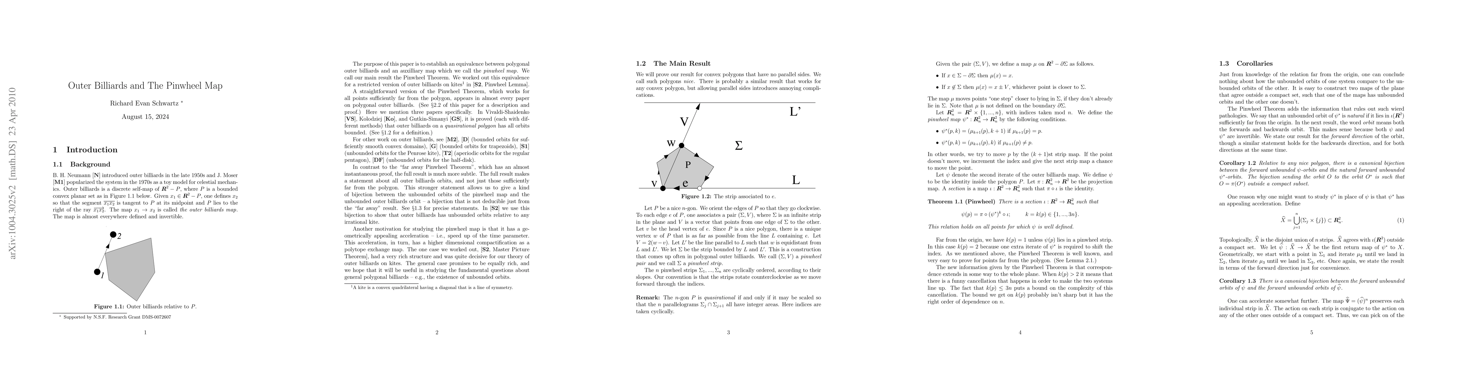 This paper establishes a bijection between polygonal outer billiards orbits and the simpler pinwheel map orbits, revealing that both systems share unbounded orbits, aiding in the analysis of the more complex outer billiards system.
