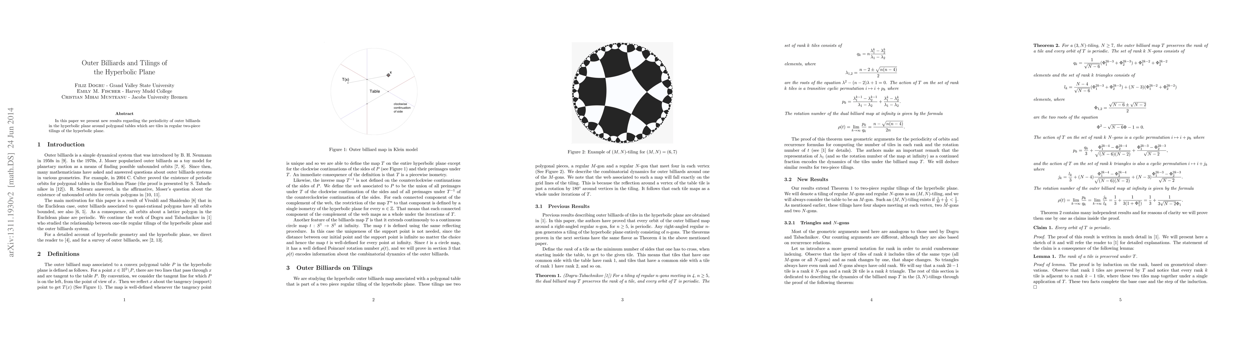 Summary: This paper explores the periodicity of outer billiards in the hyperbolic plane, focusing on polygonal tables that form part of regular two-piece tilings, revealing new insights into their dynamical behavior.