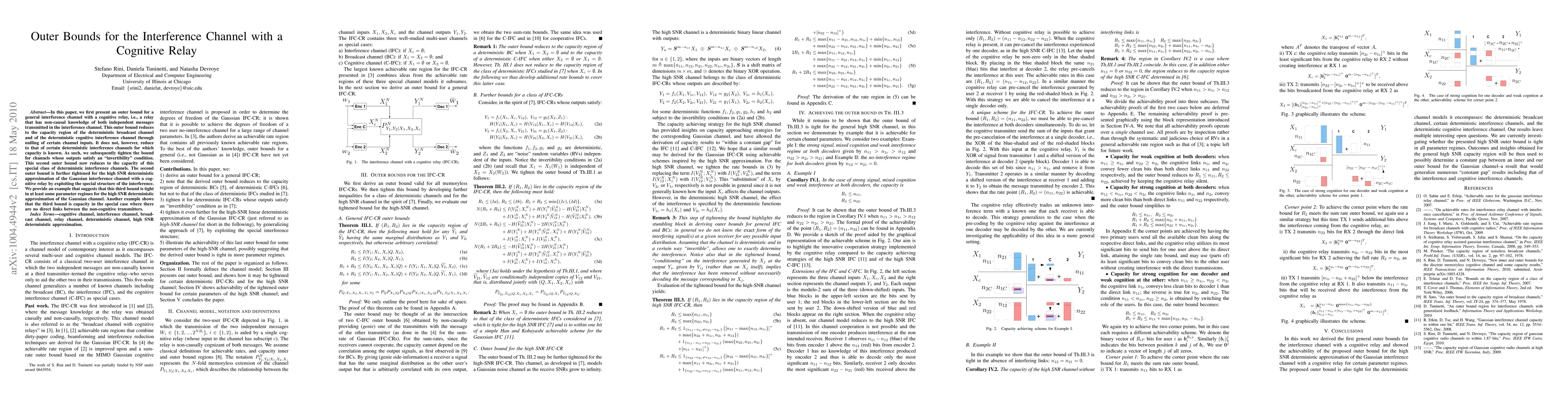 This paper presents an outer bound for the interference channel with a cognitive relay, showing it reduces to known capacity regions under certain conditions. It further tightens the bound for channels with an "invertibility" condition and provides a tight bound for high SNR Gaussian channels, suggesting its capacity in specific scenarios.