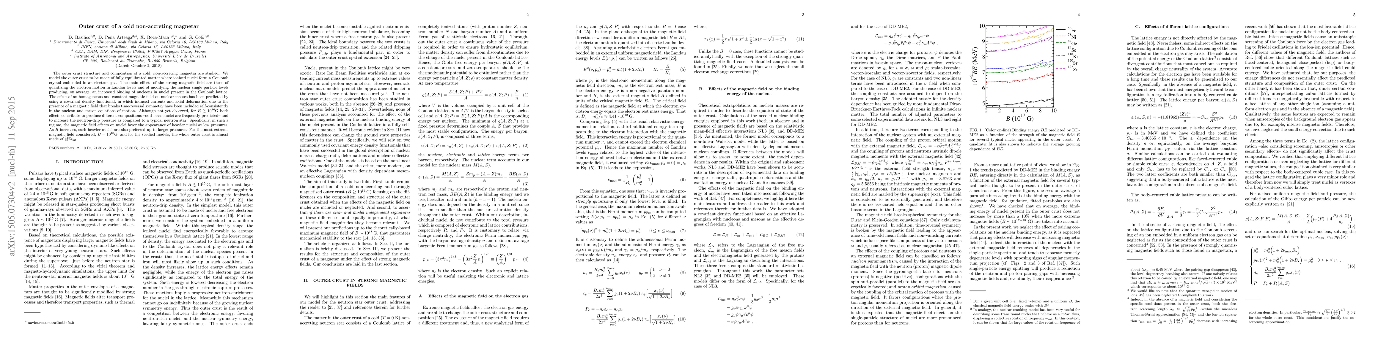 This paper investigates the structure and composition of the outer crust of a cold, non-accreting magnetar, finding that strong magnetic fields significantly influence nuclear binding and electron motion, leading to the formation of heavier nuclei like ${}_{40}^{92}$Zr$_{52}$ at high magnetic field strengths.