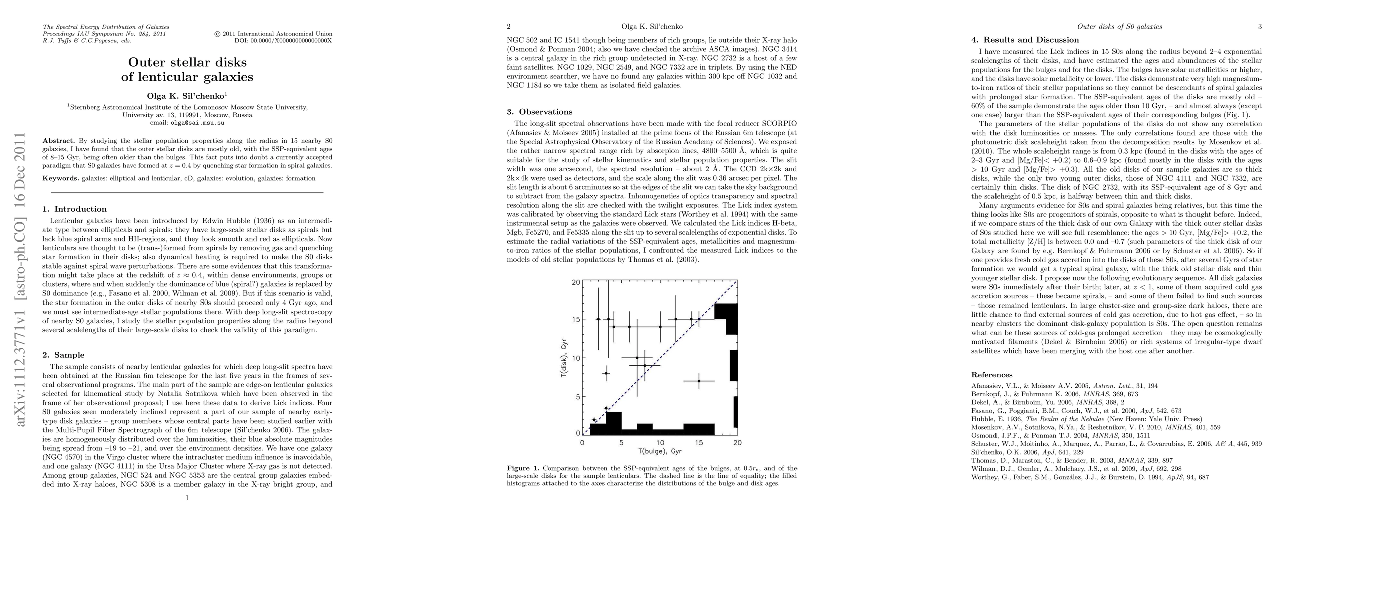 Summary: The study reveals that the outer stellar disks of 15 nearby lenticular (S0) galaxies are predominantly old, with ages ranging from 8-15 Gyr, often older than their bulges, challenging the prevailing theory that these galaxies formed recently via the quenching of spiral galaxies.