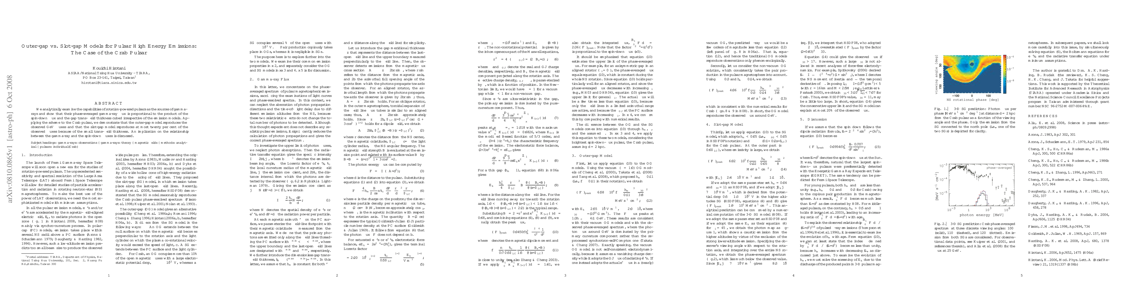 This paper compares outer-gap and slot-gap models for explaining high-energy emissions from pulsars, focusing on the Crab pulsar. It finds that the outer-gap model better explains observed GeV gamma-ray fluxes, while the slot-gap model accounts for only a small fraction due to its limited trans-field thickness.