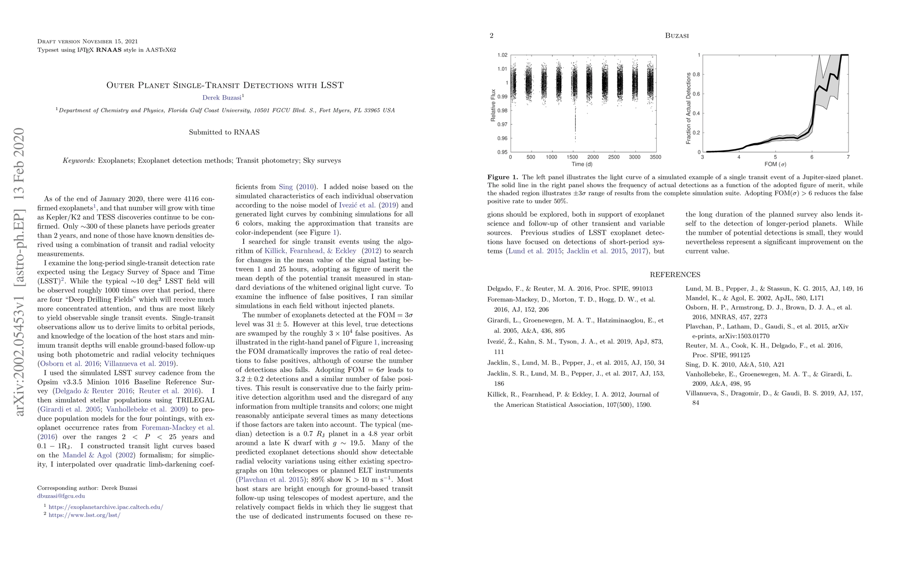 This paper explores the anticipated detection rate of single-transit events for massive outer planets in the solar system using the Large Synoptic Survey Telescope (LSST). It predicts 3-30 detections over the LSST's 10-year period, emphasizing the potential value of these detections for understanding exoplanet formation and dynamics despite challenges in distinguishing true signals from false positives.