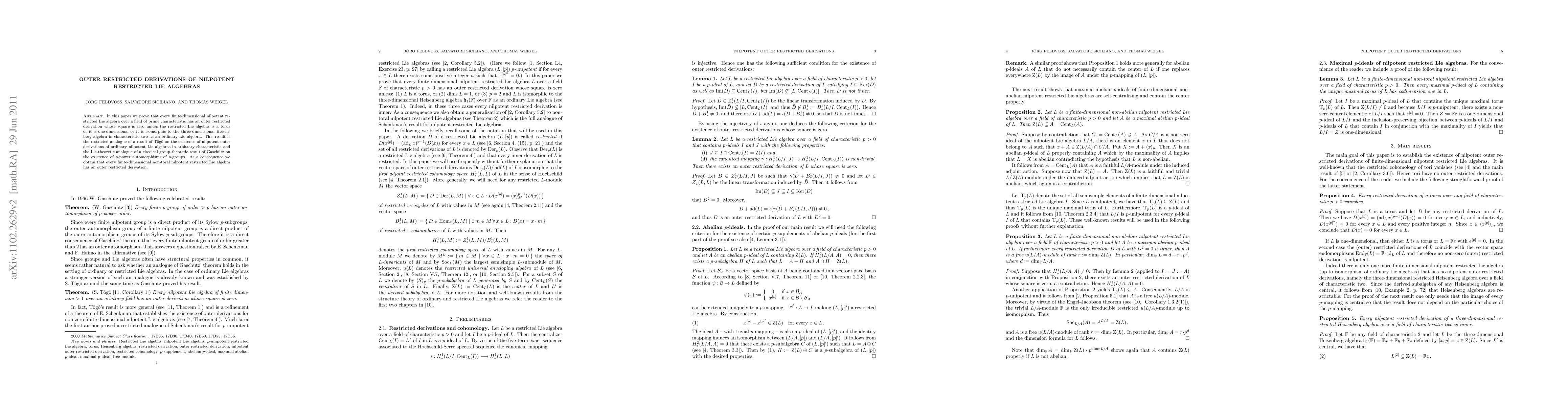 In this paper we prove that every finite-dimensional nilpotent restricted Lie algebra over a field of prime characteristic has an outer restricted derivation whose square is zero unless the restricted Lie algebra is a torus or it is one-dimensional or it is isomorphic to the three-dimensional Heisenberg algebra in characteristic two as an ordinary Lie algebra. This result is the restricted analogue of a result of T\^og\^o on the existence of nilpotent outer derivations of ordinary nilpotent Lie algebras in arbitrary characteristic and the Lie-theoretic analogue of a classical group-theoretic result of Gasch\"utz on the existence of $p$-power automorphisms of $p$-groups. As a consequence we obtain that every finite-dimensional non-toral nilpotent restricted Lie algebra has an outer restricted derivation.