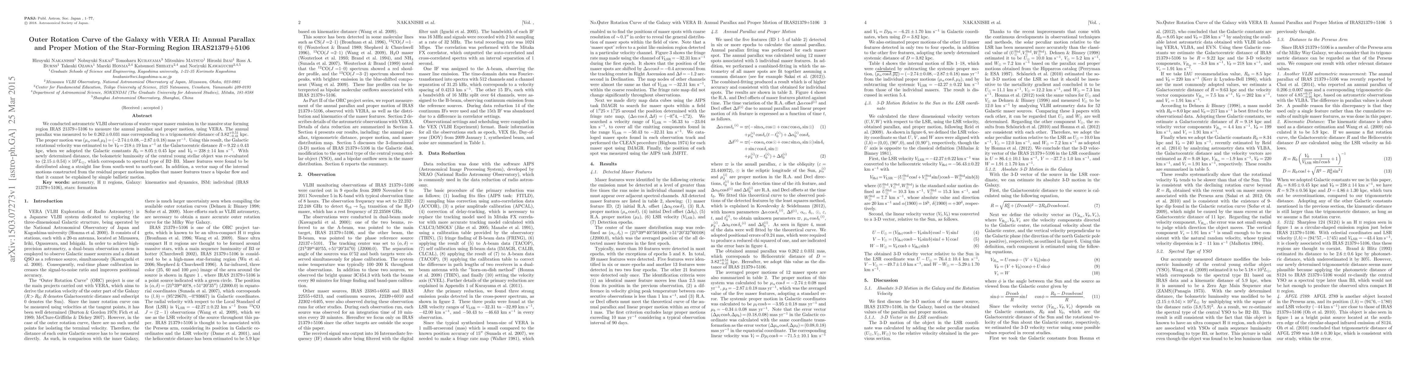 This paper measures the annual parallax and proper motion of the star-forming region IRAS 21379+5106 using VERA, determining a Galactic rotational velocity of $218\pm 19$ km s$^{-1}$ and re-evaluating the bolometric luminosity of the central young stellar object. The maser features trace a bipolar flow, indicating complex internal motions.