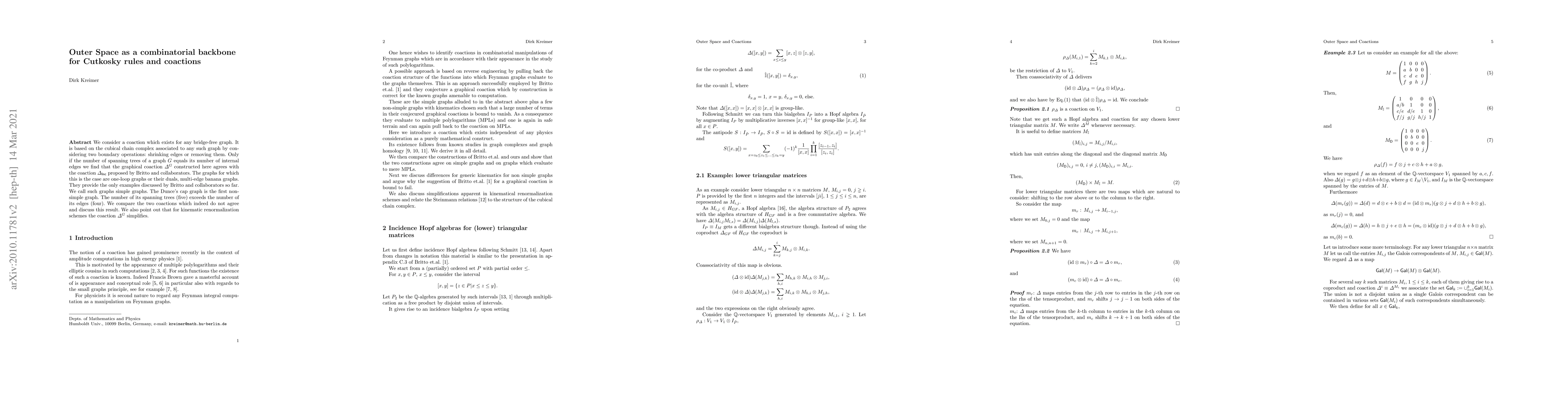 We consider a coaction which exists for any bridge-free graph. It is based on the cubical chain complex associated to any such graph by considering two boundary operations: shrinking edges or removing them. Only if the number of spanning trees of a graph $G$ equals its number of internal edges we find that the graphical coaction $\Delta^G$ constructed here agrees with the coaction $\Delta_{\mathsf{Inc}}$ proposed by Britto and collaborators. The graphs for which this is the case are one-loop graphs or their duals, multi-edge banana graphs. They provide the only examples discussed by Britto and collaborators so far. We call such graphs simple graphs. The Dunce's cap graph is the first non-simple graph. The number of its spanning trees (five) exceeds the number of its edges (four). We compare the two coactions which indeed do not agree and discuss this result. We also point out that for kinematic renormalization schemes the coaction $\Delta^G$ simplifies.