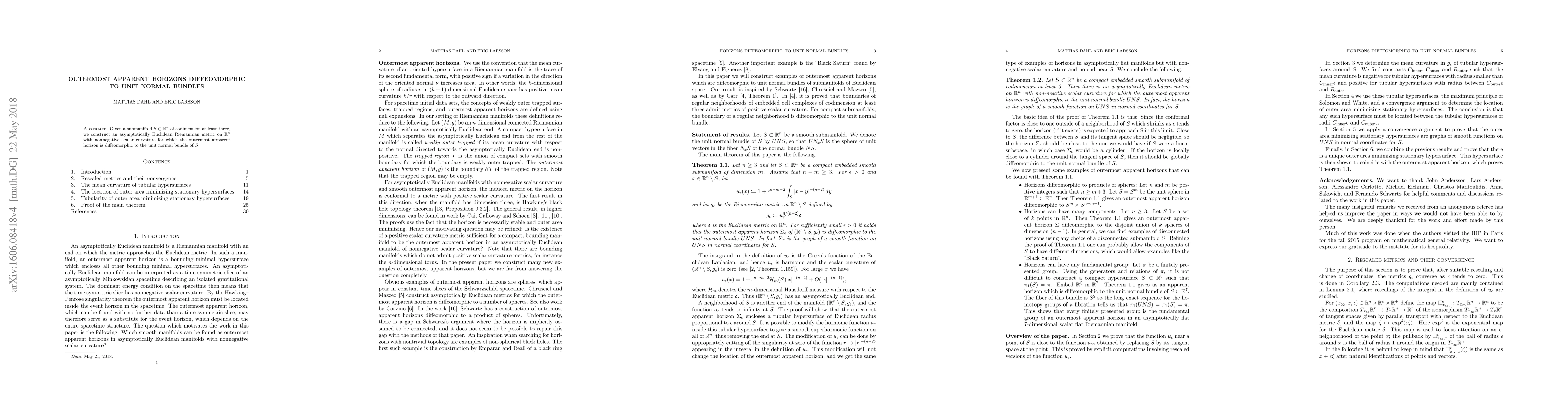Given a submanifold $S \subset \mathbb R^n$ of codimension at least three, we construct an asymptotically Euclidean Riemannian metric on $\mathbb R^n$ with nonnegative scalar curvature for which the outermost apparent horizon is diffeomorphic to the unit normal bundle of $S$.