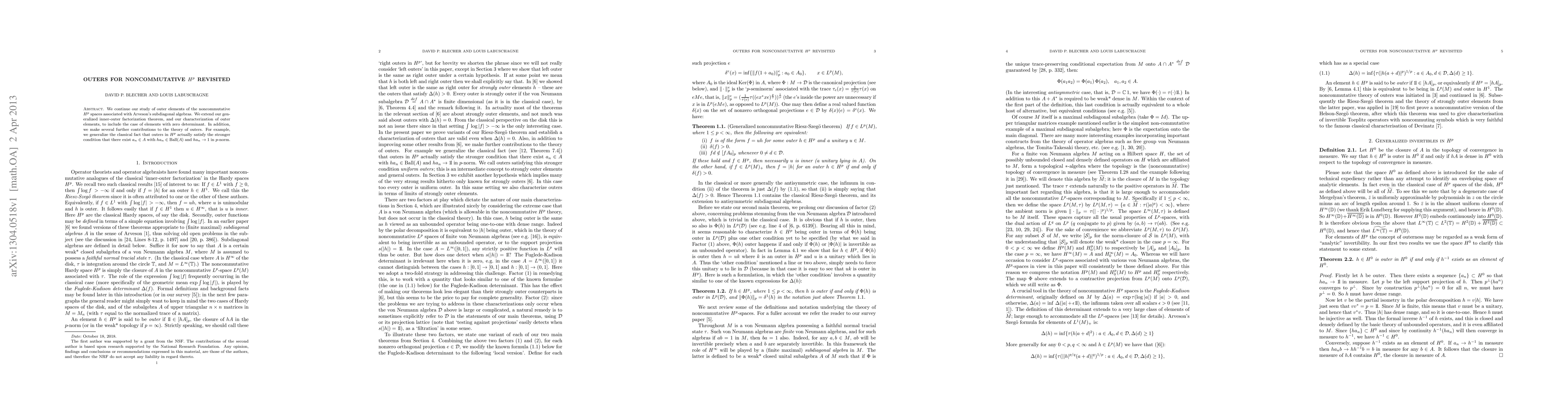 This paper extends the study of outer elements in noncommutative H^p spaces, refining the generalized inner-outer factorization theorem and characterizing outer elements, even for those with zero determinant. It also generalizes the classical property that outers satisfy a stronger condition involving sequences in the algebra converging to the identity.