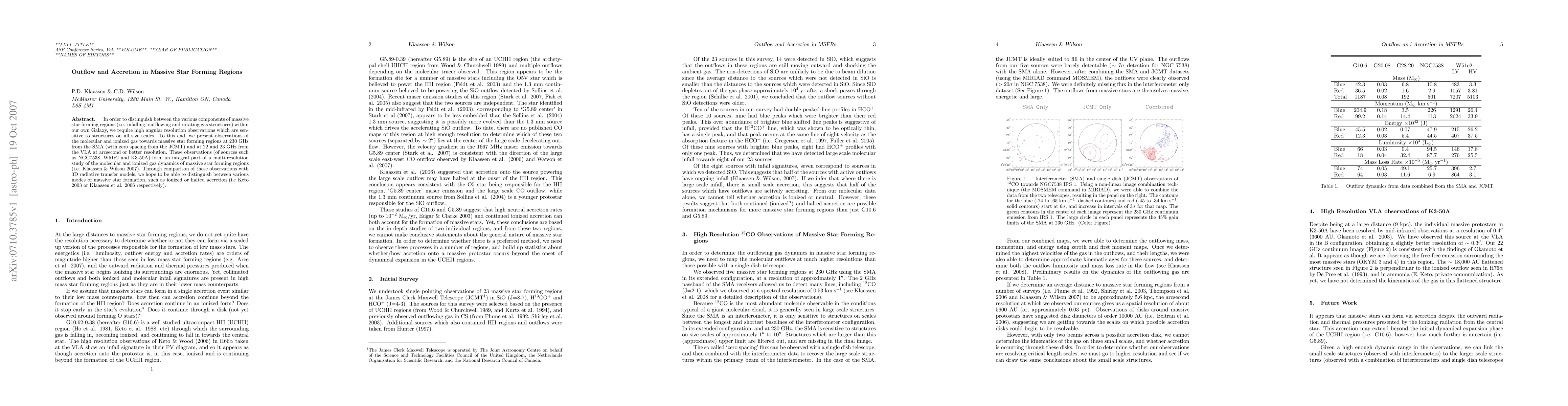 The study combines high-resolution SMA and JCMT observations with 3D radiative transfer models to distinguish between various modes of massive star formation, providing insights into both outflow and accretion processes.