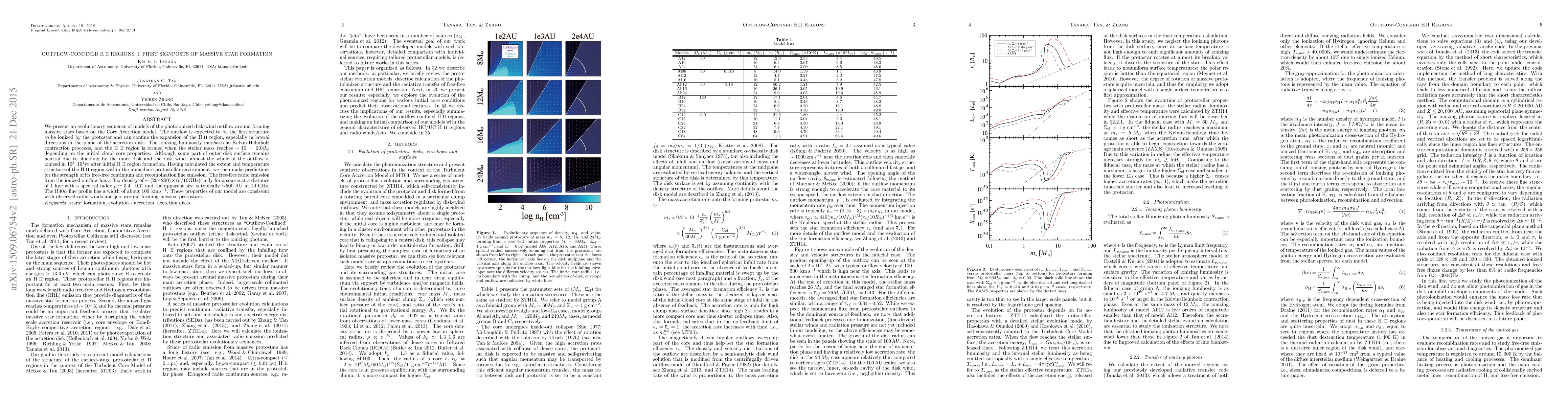 This paper models the photoionized disk-wind outflow around forming massive stars, predicting the ionization and expansion of HII regions as the stars evolve. The outflow confines the HII region, and the ionized outflow's free-free radio emission and H40alpha line profile are consistent with observed massive protostars.