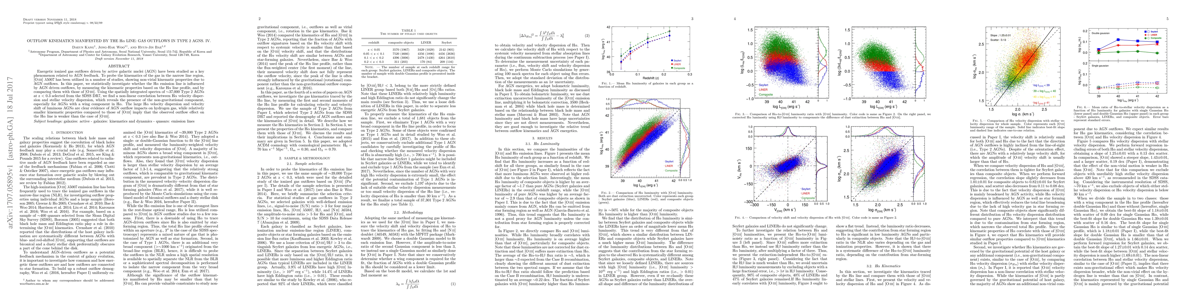 This paper investigates the influence of AGN-driven gas outflows on the H-alpha emission line in Type 2 AGNs, finding a non-linear correlation between H-alpha velocity dispersion and stellar velocity dispersion, indicating a non-gravitational component. The study concludes that while H-alpha shows evidence of AGN outflow impacts, the effect is weaker compared to the [O III] line.