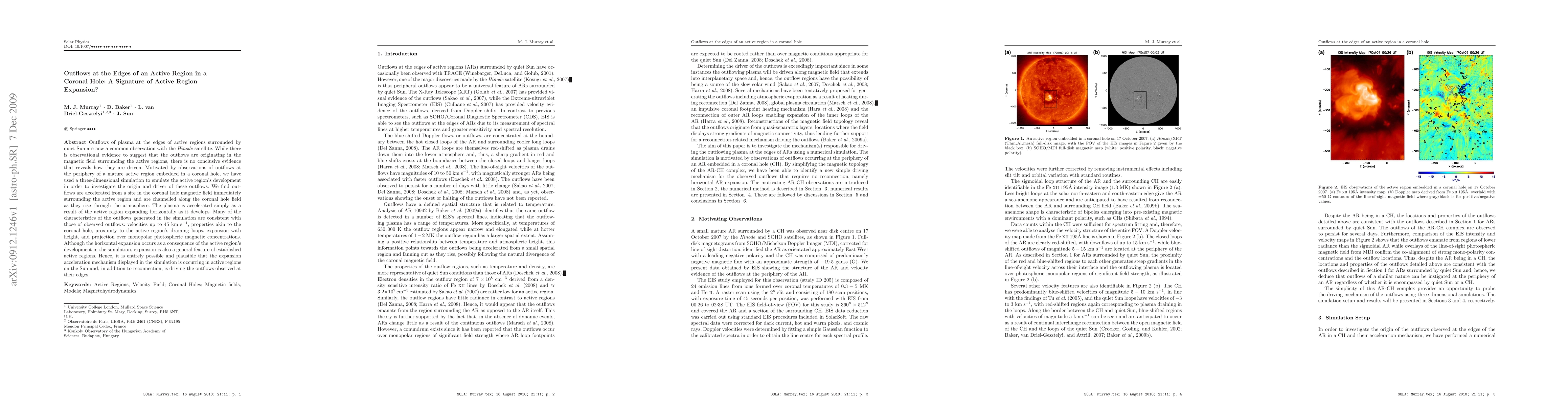 This study investigates plasma outflows at the edges of active regions using a three-dimensional simulation, finding that these outflows are driven by the horizontal expansion of the active region. The simulation shows that these outflows are consistent with observed characteristics, suggesting that active region expansion may be a significant driver of such outflows.
