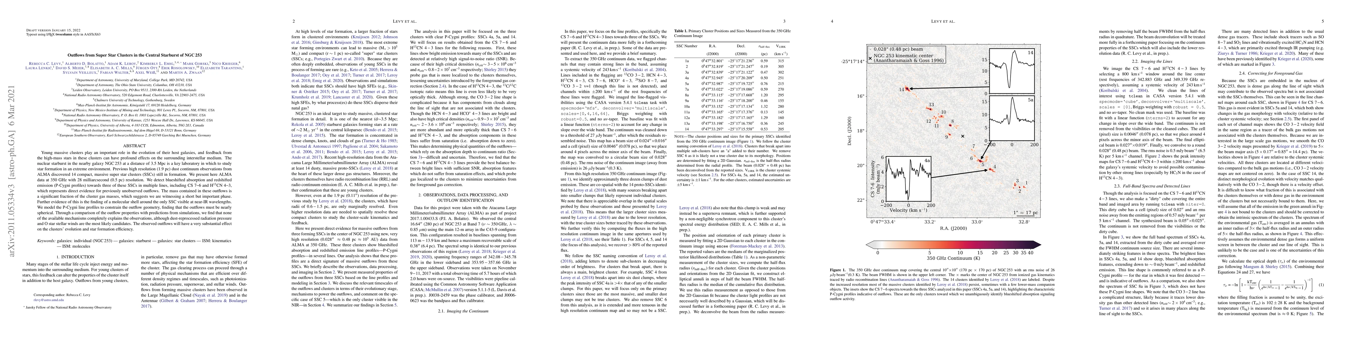 This paper reports ALMA observations revealing outflows from super star clusters in NGC253's central starburst, showing P-Cygni profiles indicative of significant gas outflows. The outflows are likely driven by dust-reprocessed radiation pressure and O star winds, impacting the clusters' evolution and star formation efficiency.