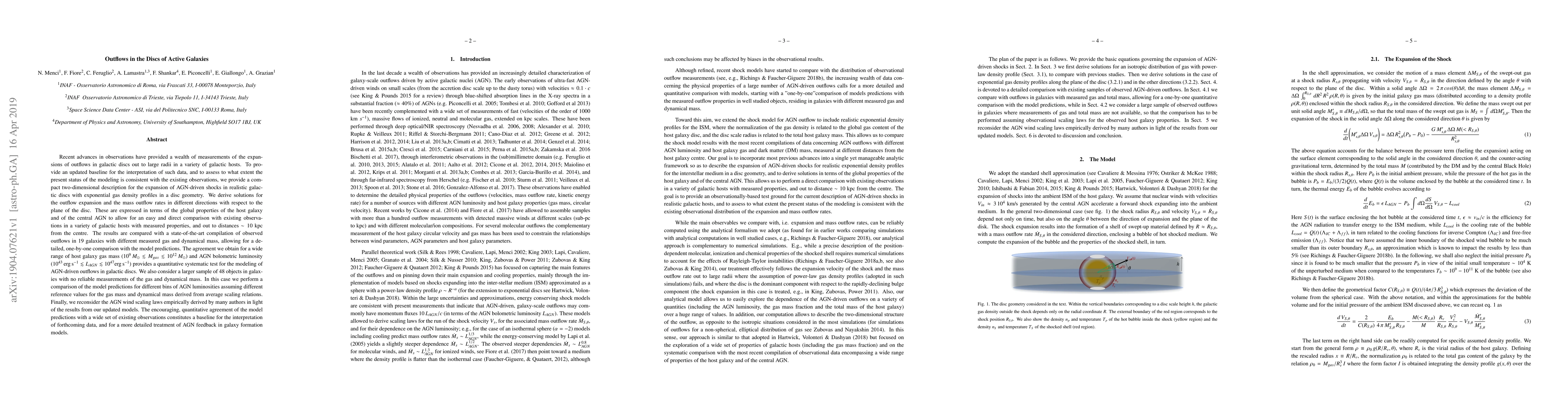 This paper presents a two-dimensional model for AGN-driven outflows in galactic discs, comparing its predictions with observations of 19 galaxies. The model's quantitative agreement with existing data provides a robust baseline for interpreting future observations and understanding AGN feedback in galaxy formation models.
