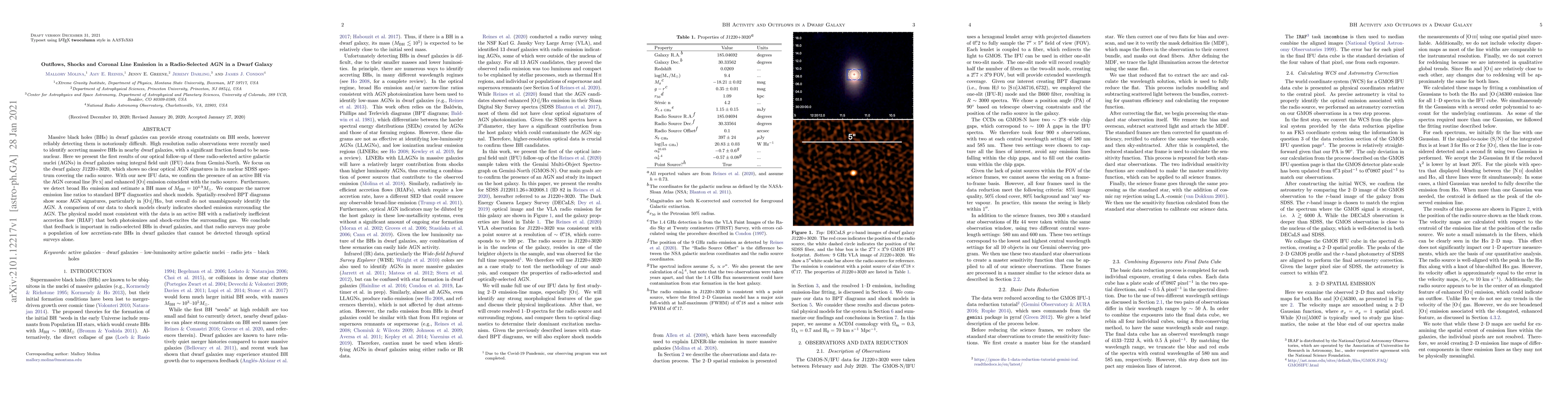 This paper identifies an active black hole in the dwarf galaxy J1220+3020 using high-resolution optical data from Gemini-North, confirming its presence via AGN coronal lines and shocked emission. The study suggests that radio surveys can reveal low accretion-rate black holes in dwarf galaxies that are otherwise undetectable through optical surveys.