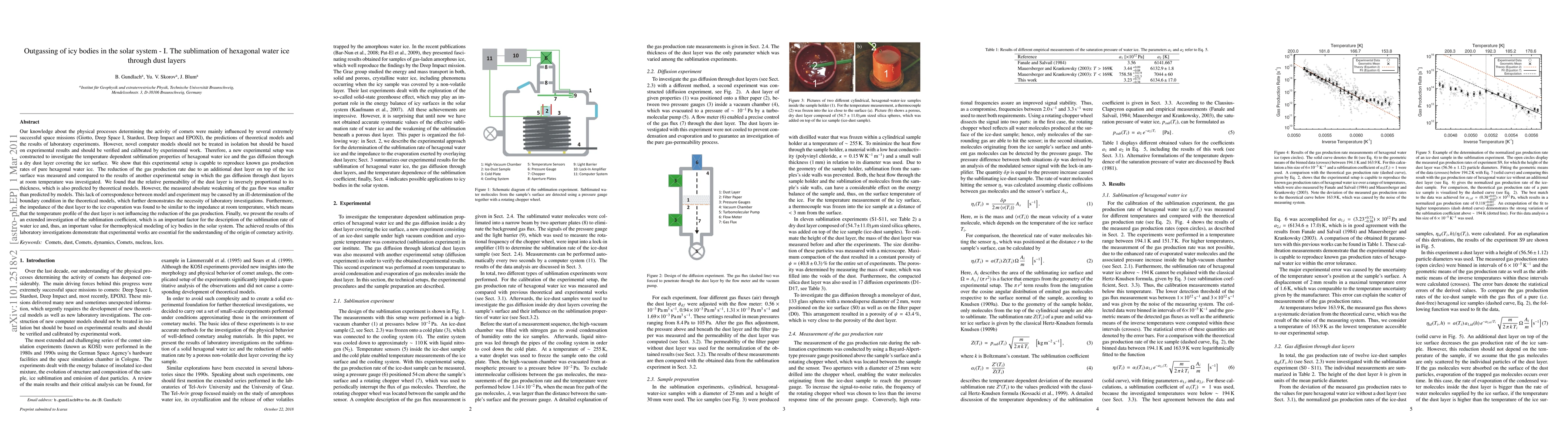 This study investigates the sublimation properties of hexagonal water ice and the diffusion of gases through dust layers using a new experimental setup. The results show that while the relative permeability of dust layers inversely correlates with thickness, the absolute weakening of gas flow is less than predicted by theoretical models, highlighting the necessity of experimental validation.