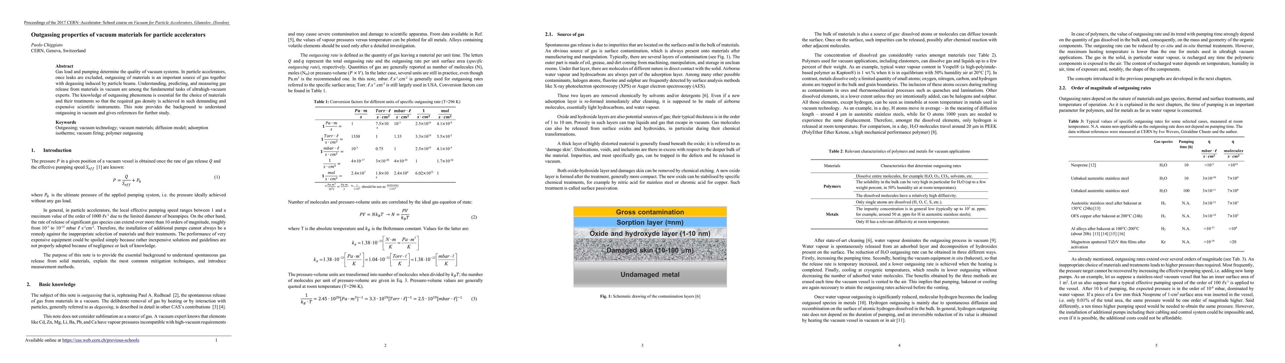 This paper discusses the significance of outgassing in vacuum systems for particle accelerators, emphasizing its role in determining gas load and the quality of vacuum. It highlights the importance of understanding and predicting gas release from materials to achieve the required gas density in ultrahigh-vacuum environments.
