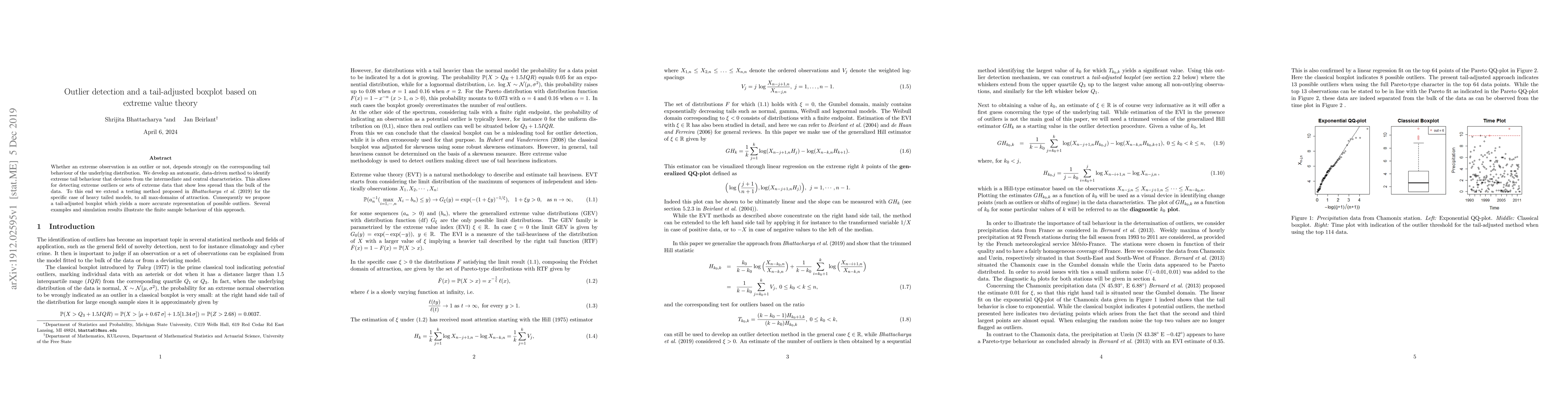 Whether an extreme observation is an outlier or not, depends strongly on the corresponding tail behaviour of the underlying distribution. We develop an automatic, data-driven method to identify extreme tail behaviour that deviates from the intermediate and central characteristics. This allows for detecting extreme outliers or sets of extreme data that show less spread than the bulk of the data. To this end we extend a testing method proposed in Bhattacharya et al 2019 for the specific case of heavy tailed models, to all max-domains of attraction. Consequently we propose a tail-adjusted boxplot which yields a more accurate representation of possible outliers. Several examples and simulation results illustrate the finite sample behaviour of this approach.