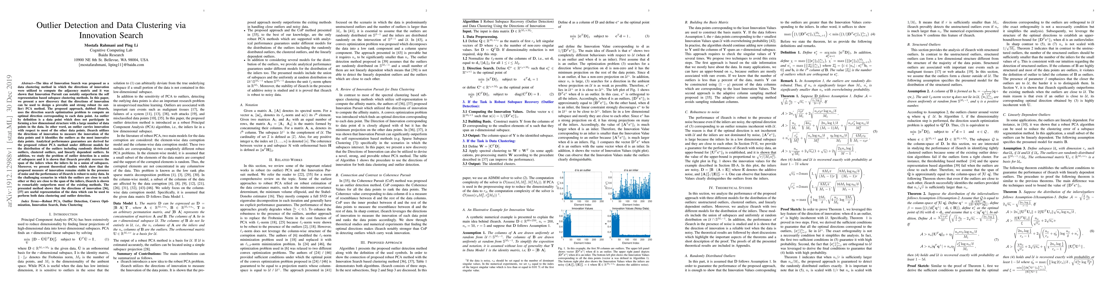 This paper introduces iSearch, a novel method for data clustering and outlier detection based on the directions of innovation. It demonstrates that iSearch can robustly identify outliers as the most innovative data points, providing analytical performance guarantees under various outlier distributions and showing superior performance in challenging scenarios.