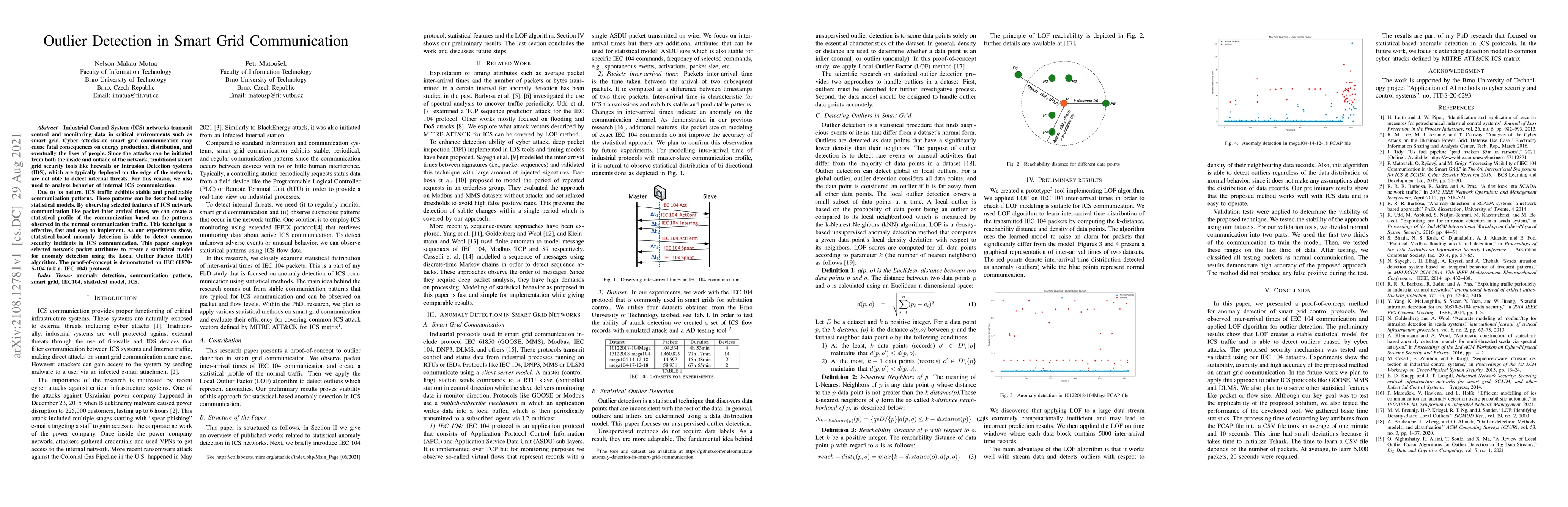 This paper explores the detection of outliers in Industrial Control System (ICS) networks, specifically focusing on smart grid communication, to identify potential cyber threats that traditional security tools may miss. The study emphasizes the need for analyzing internal ICS communication behavior to safeguard against both external and internal attacks.