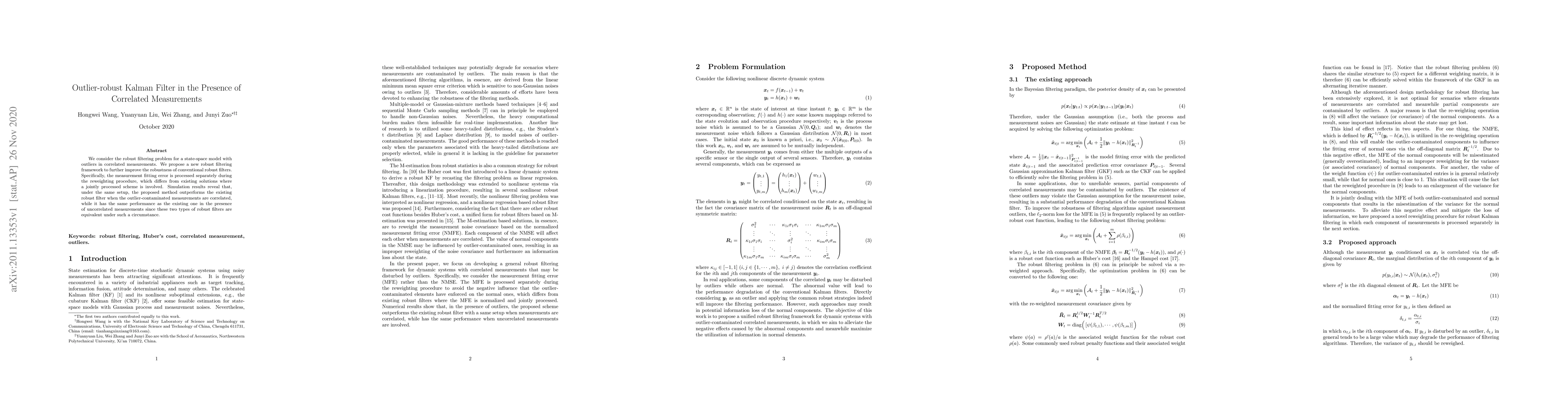 The paper proposes a novel robust filtering method for state-space models with outlier-contaminated, correlated measurements. This method outperforms existing robust filters in correlated outlier scenarios, while maintaining equivalent performance for uncorrelated outliers.