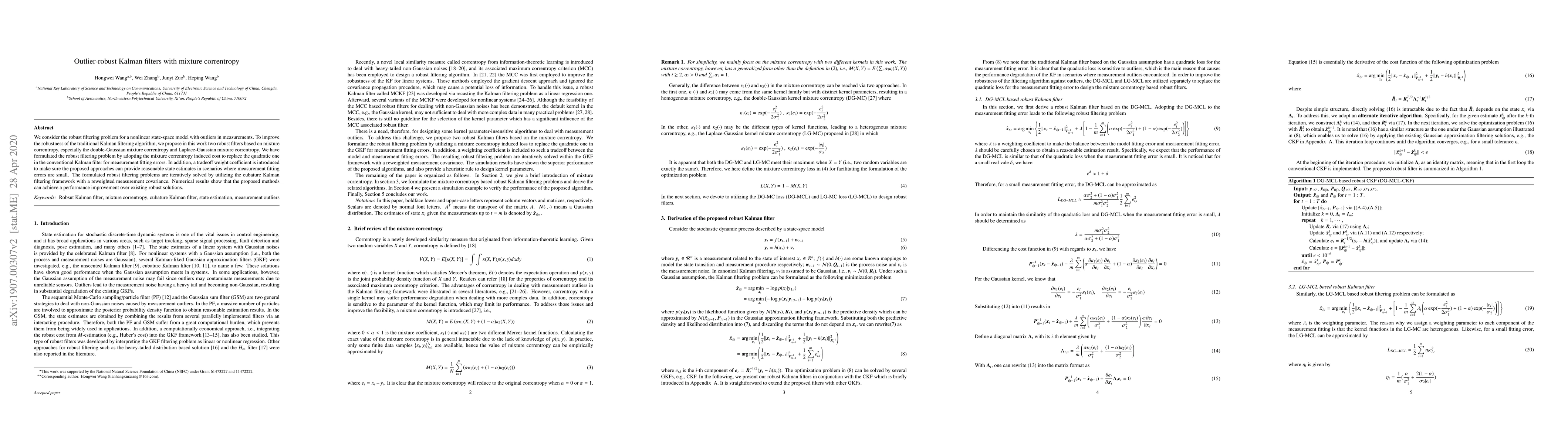 This paper proposes two robust Kalman filters based on mixture correntropy to improve the robustness of traditional Kalman filters against measurement outliers. The filters utilize double-Gaussian and Laplace-Gaussian mixture correntropy, replacing the quadratic cost in conventional Kalman filters, and are shown to outperform existing methods through numerical results.