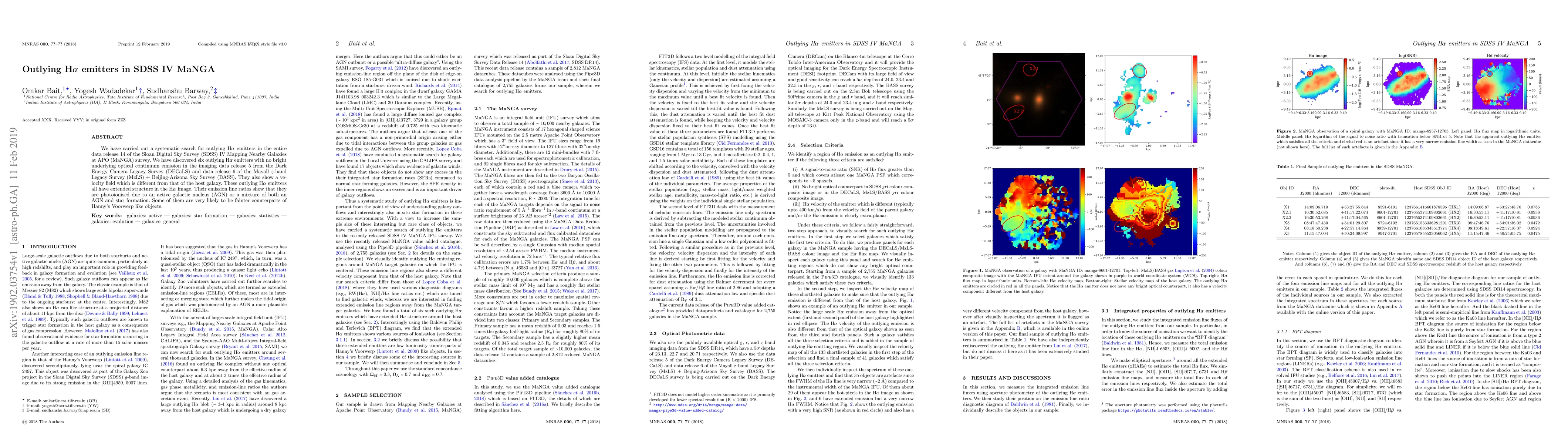 The paper presents a systematic search method for outlying Hα emitters using SDSS IV MaNGA DR14 data, combined with imaging data from DECaLS and MzLS/BASS surveys.