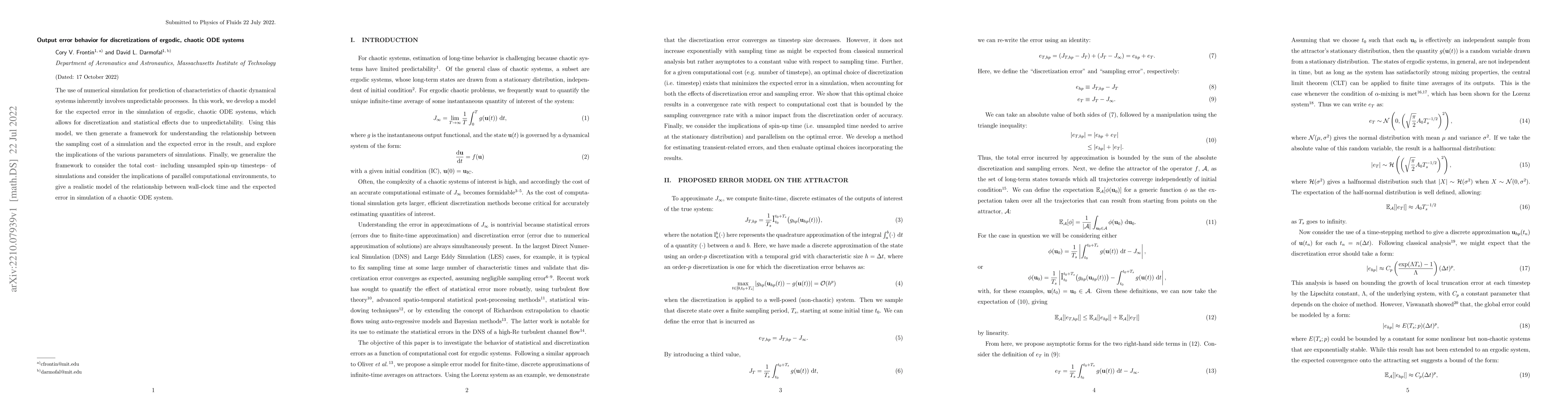 This paper develops a model to predict the expected error in numerical simulations of ergodic, chaotic ODE systems, considering discretization and statistical effects due to unpredictability. It also explores the relationship between simulation cost and error, and extends the framework to include parallel computational environments and unsampled spin-up timesteps.