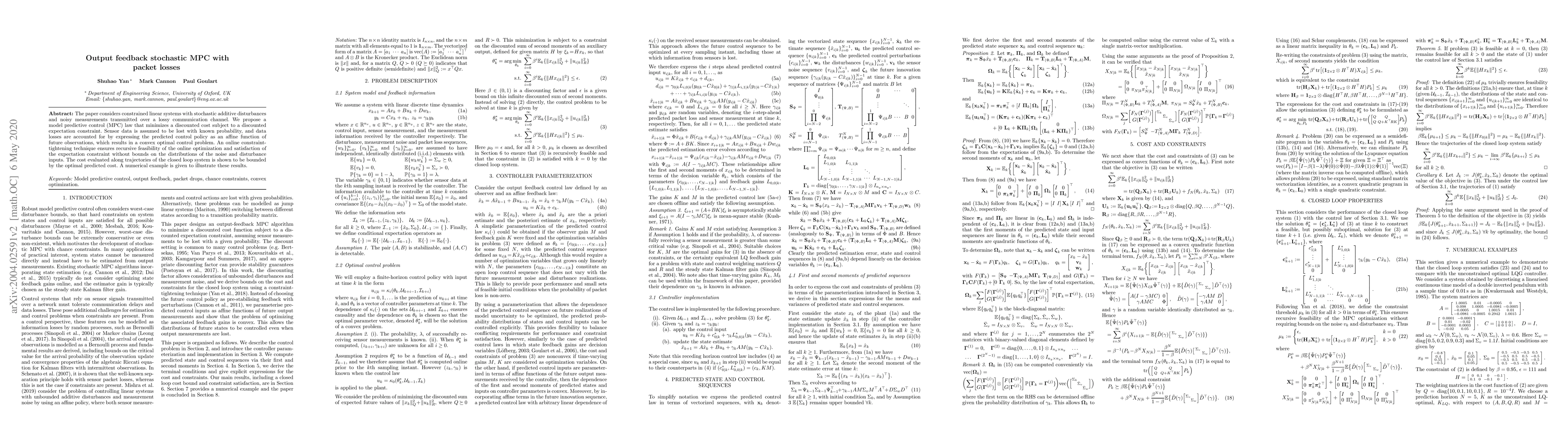 Paul J. Goulart, Shuhao Yan, Mark Cannon