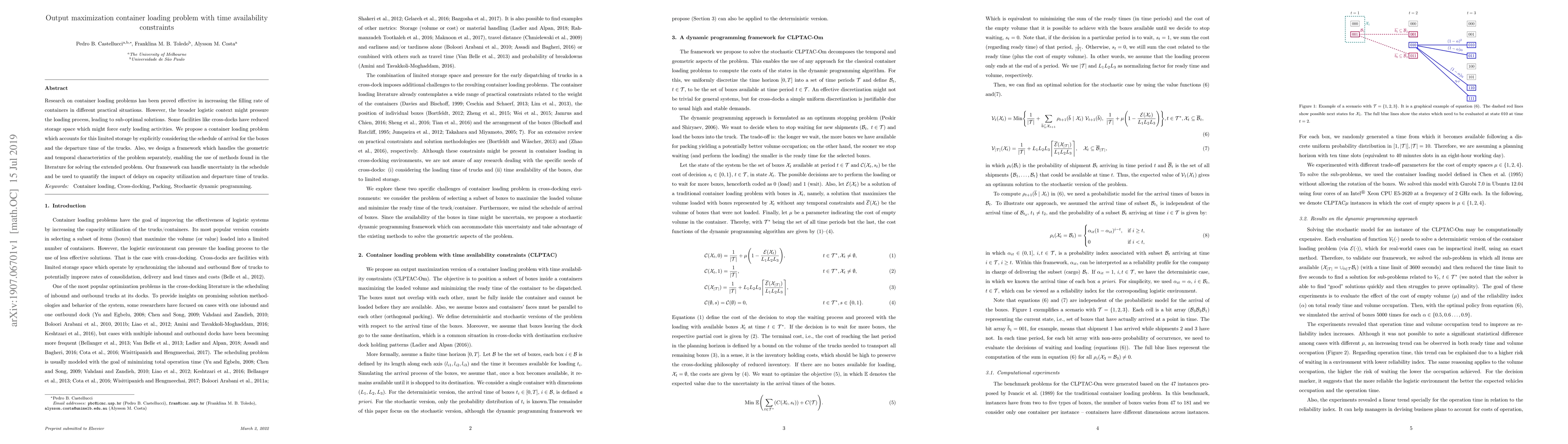 This paper proposes a framework for maximizing container loading output while considering time availability constraints, addressing the challenge of limited storage space in facilities like cross-docks. It separates the geometric and temporal aspects of the problem to leverage existing methods and quantify the impact of schedule uncertainties on capacity utilization and truck departure times.