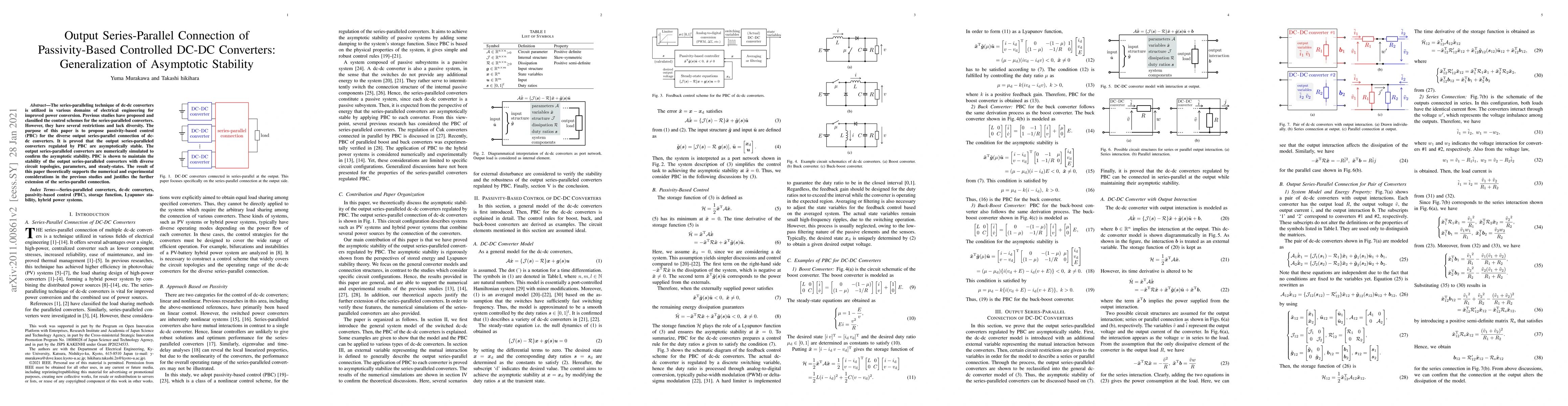 This paper proposes a passivity-based control (PBC) method for series-parallel connected DC-DC converters, demonstrating their asymptotic stability through theoretical proofs and numerical simulations. The PBC approach ensures stability across diverse circuit topologies and parameters, supporting the generalization of stability in series-parallel configurations.