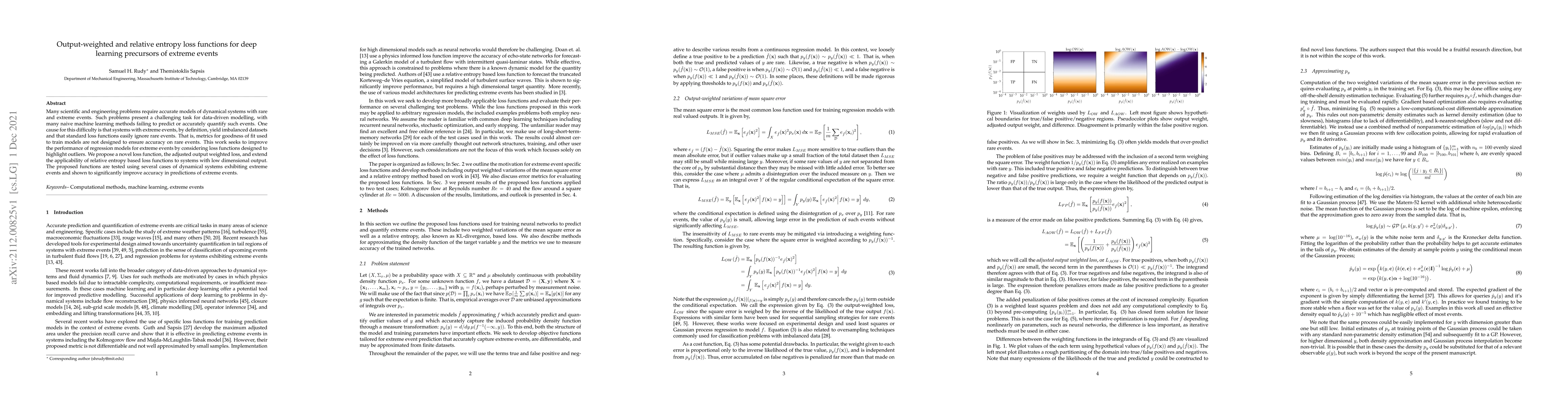 This paper proposes novel loss functions, including an adjusted output weighted loss and an extension of relative entropy loss, to improve the accuracy of regression models in predicting rare and extreme events in dynamical systems. These methods are shown to significantly enhance the prediction of extreme events compared to standard loss functions.