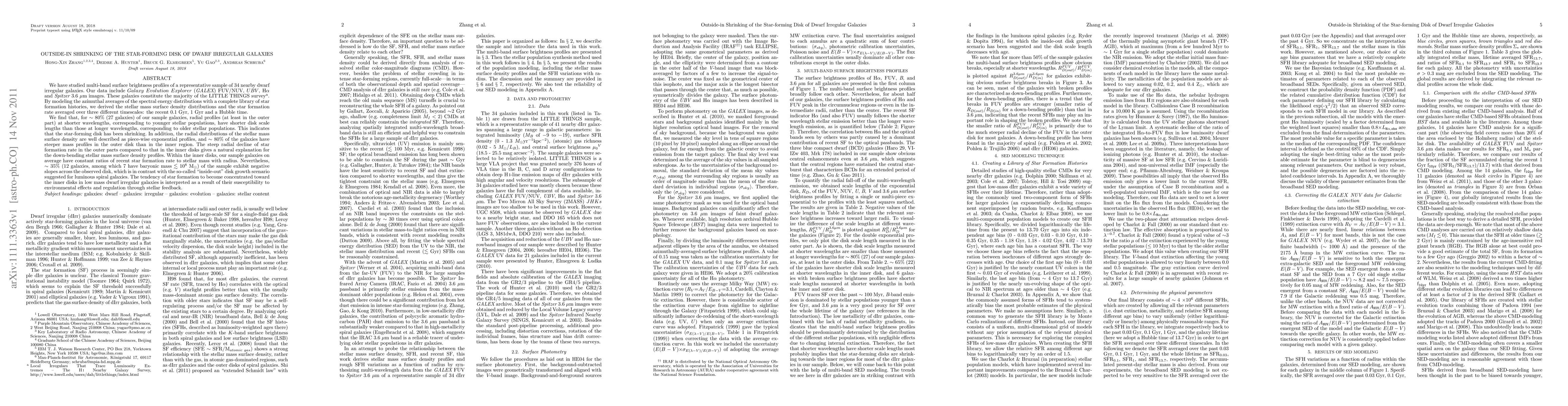 Many dwarf irregular galaxies have shrinking star-forming disks with outer parts smaller than inner parts. This suggests that star formation has become concentrated towards the centers of these low-mass galaxies due to environmental effects.