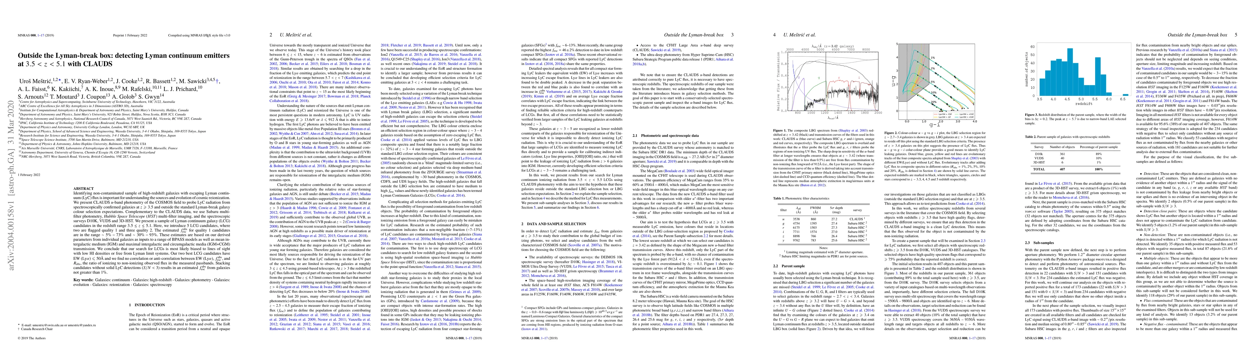 This paper identifies Lyman continuum emitters (LCGs) at high redshifts ($3.5<z<5.1$) using CLAUDS $u$-band photometry and other complementary data sources. It presents a sample of 5 LCG candidates, with estimated escaping absolute flux ranging from 5% to 93%, suggesting a bias towards low HI density lines of sight.