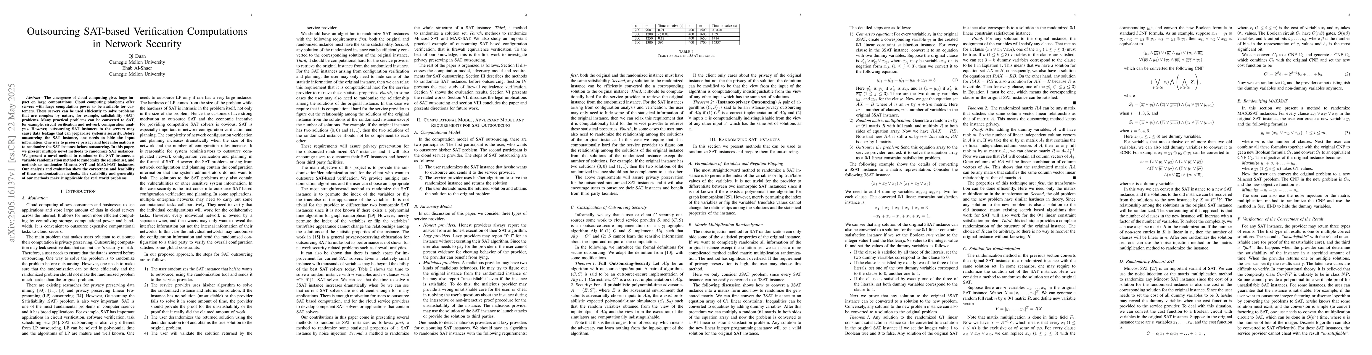Researchers developed novel methods to randomize SAT instances for secure outsourcing, improving scalability and feasibility for real-world network security applications. Their approach ensures data privacy while maintaining problem-solving accuracy.