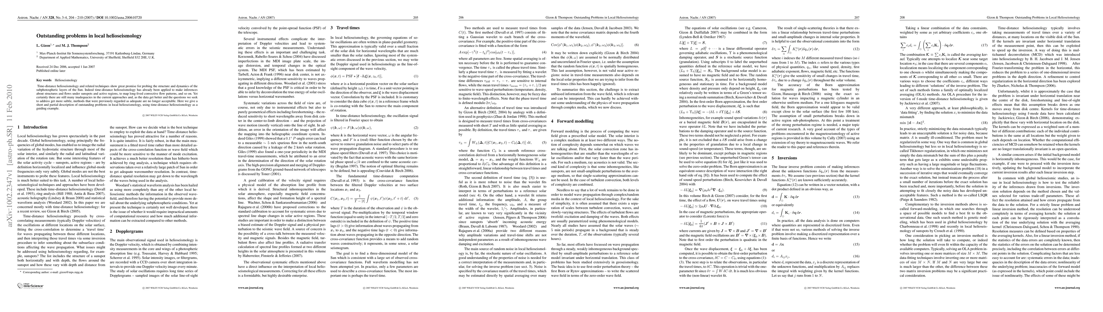 Time-distance helioseismology and related techniques show great promise for probing the structure and dynamics of the subphotospheric layers of the Sun. Indeed time-distance helioseismology has already been applied to make inferences about structures and flows under sunspots and active regions, to map long-lived convective flow patterns, and so on. Yet certainly there are still many inadequacies in the current approaches and, as the data get better and the questions we seek to address get more subtle, methods that were previously regarded as adequate are no longer acceptable. Here we give a short and partial description of outstanding problems in local helioseismology, using time-distance helioseismology as a guiding example.