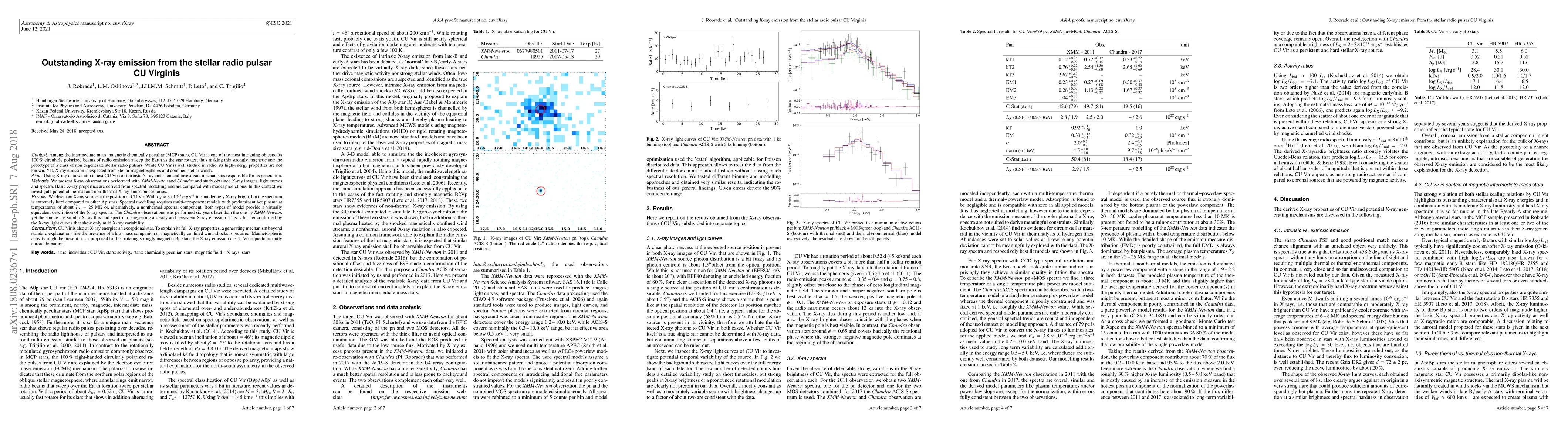 We present X-ray observations of CU Vir performed with XMM-Newton and Chandra. With Lx = 3 x 10^28 erg/s the source is moderately X-ray bright, but its spectrum is extremely hard compared to other Ap stars. Spectral modelling requires multi-component models with predominant hot plasma at temperatures of about Tx = 25 MK or, alternatively, a nonthermal spectral component. The Chandra observations was performed six years later than the one by XMM-Newton, yet the source has similar X-ray flux and spectrum, suggesting a steady and persistent X-ray emission. To explain its full X-ray properties, a generating mechanism beyond standard explanations like the presence of a low-mass companion or magnetically confined wind-shocks is required. Magnetospheric activity might be present or, as proposed for fast rotating strongly magnetic Bp stars, the X-ray emission of CU Vir is predominantly auroral in nature.