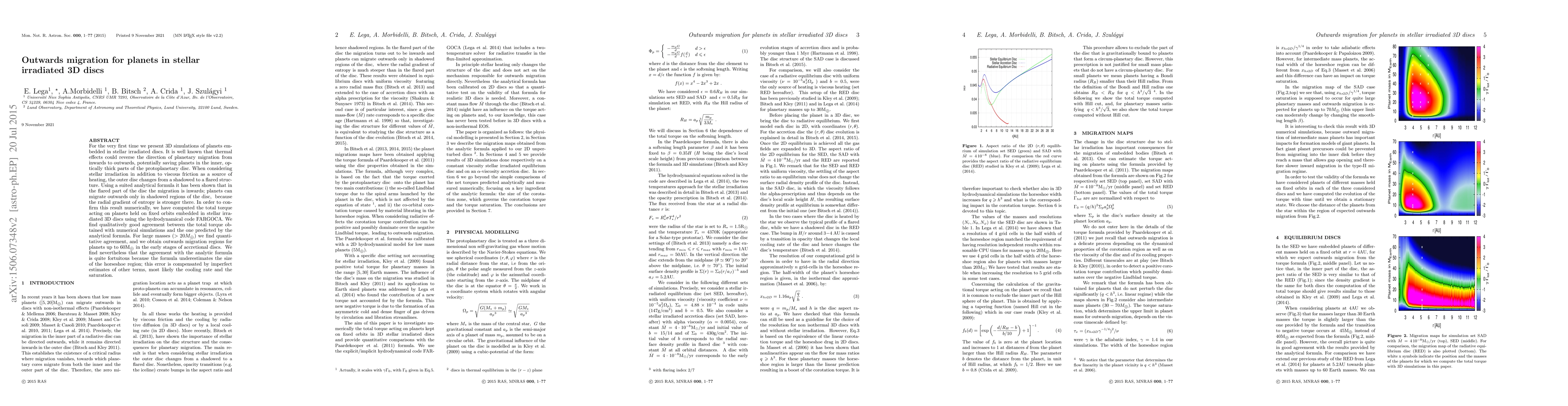 This paper presents 3D simulations of planets in stellar irradiated discs, showing that thermal effects can reverse planetary migration from inward to outward, especially in shadowed regions. Numerical simulations confirm that planets can migrate outwards in these regions due to stronger radial entropy gradients, with good agreement for large masses.
