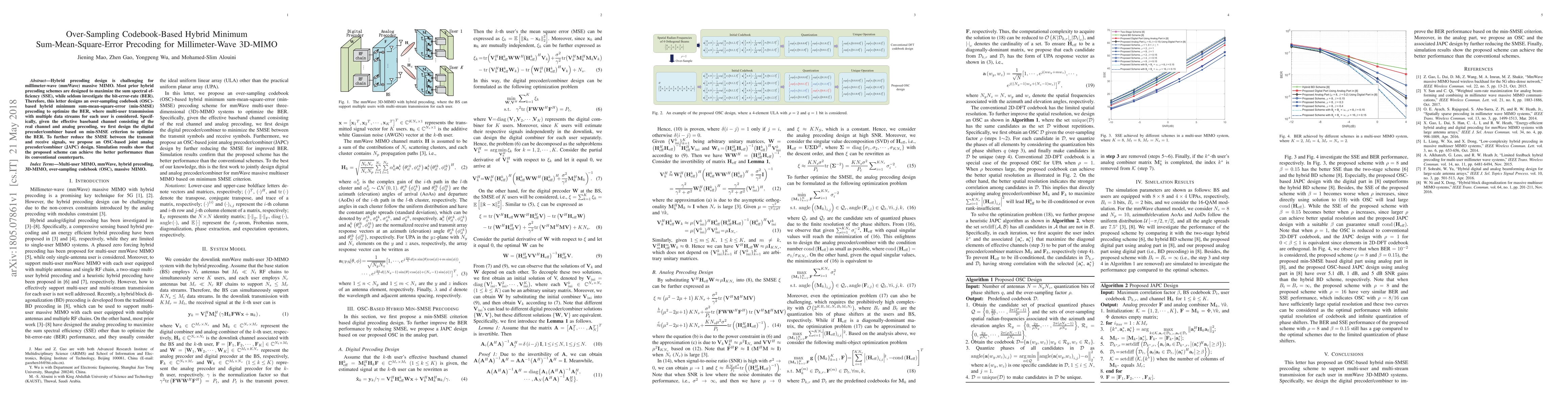 This paper proposes an over-sampling codebook-based hybrid minimum sum-mean-square-error (min-SMSE) precoding scheme for millimeter-wave 3D-MIMO systems to optimize the bit-error-rate (BER). The scheme combines a min-SMSE digital precoder/combiner with an OSC-based joint analog precoder/combiner design, achieving better performance than conventional methods.