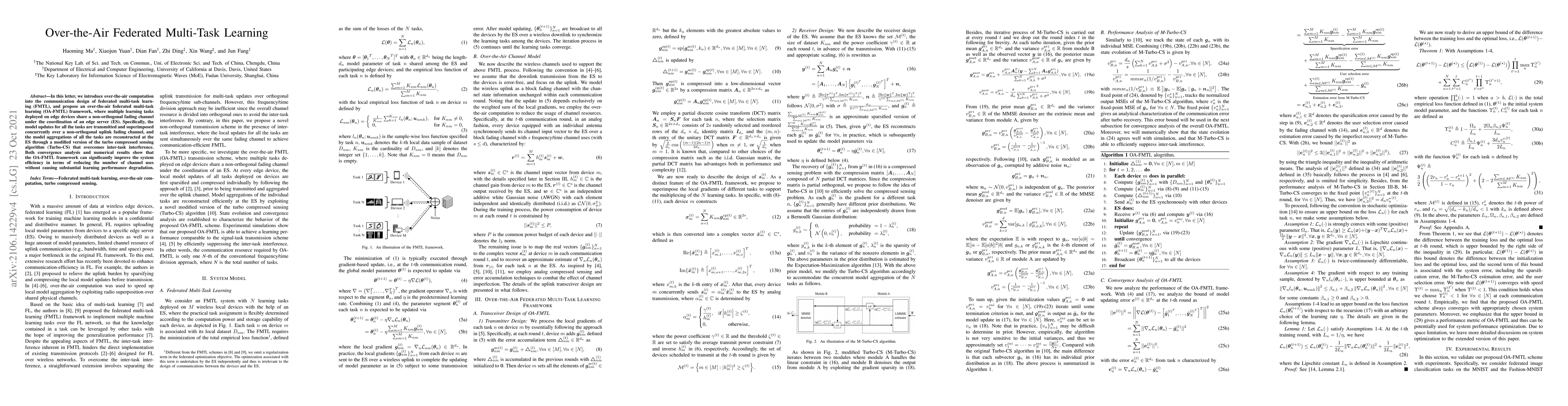 This paper proposes an over-the-air federated multi-task learning (OA-FMTL) framework that enables multiple learning tasks on edge devices to share a non-orthogonal fading channel, using a modified turbo compressed sensing algorithm to reconstruct model aggregations and mitigate inter-task interference, thereby improving system efficiency.