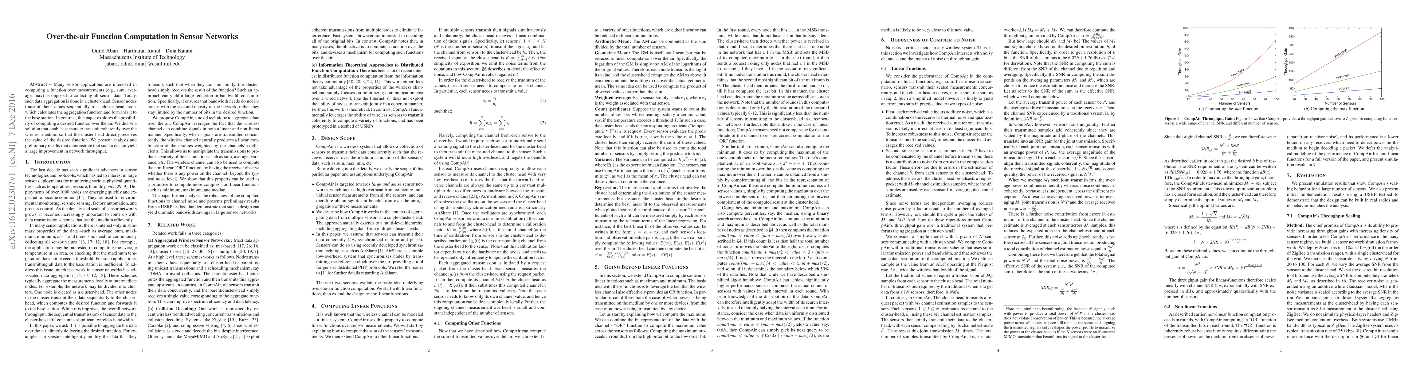 Many sensor applications are interested in computing a function over measurements (e.g., sum, average, max) as opposed to collecting all sensor data. Today, such data aggregation is done in a cluster-head. Sensor nodes transmit their values sequentially to a cluster-head node, which calculates the aggregation function and forwards it to the base station. In contrast, this paper explores the possibility of computing a desired function over the air. We devise a solution that enables sensors to transmit coherently over the wireless medium so that the cluster-head directly receives the value of the desired function. We present analysis and preliminary results that demonstrate that such a design yield a large improvement in network throughput.