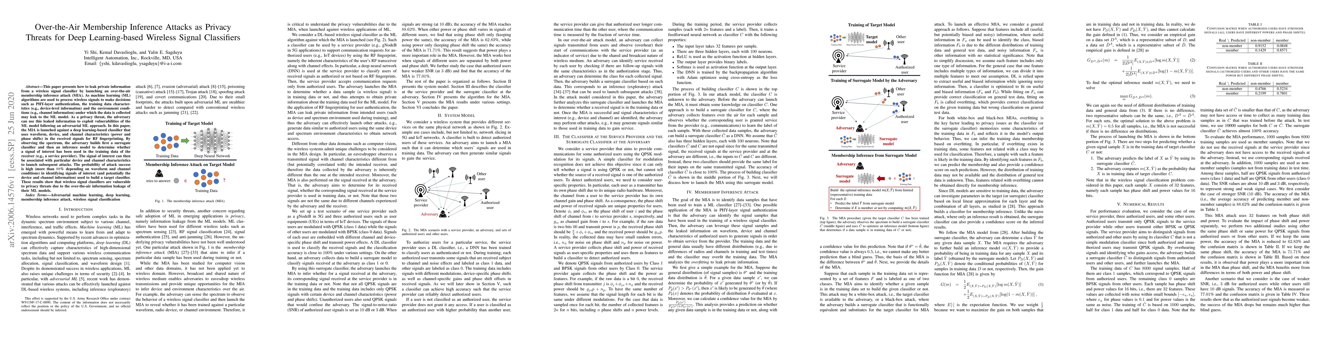 This paper demonstrates how an over-the-air membership inference attack can be used to leak private information from a deep learning-based wireless signal classifier, revealing device and channel characteristics. The attack achieves high success rates (over 88%) in identifying signals used in the classifier's training data, highlighting the privacy vulnerabilities of such models.