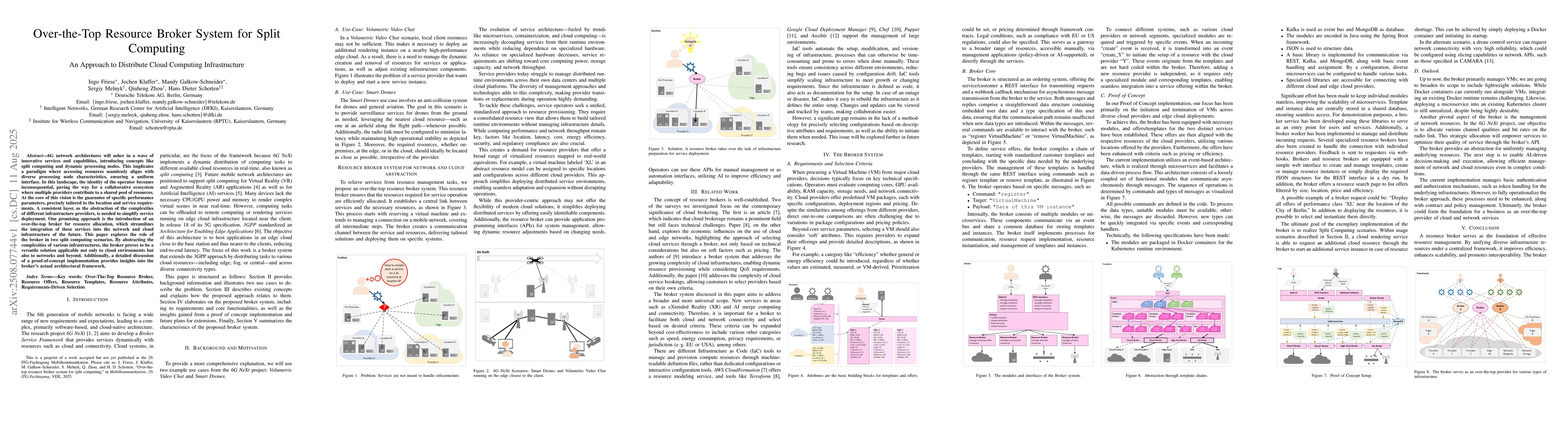 The research explores the concept of an Over-the-Top (OTT) Resource Broker System for Split Computing, focusing on distributing cloud computing infrastructure. It examines two use-cases: Volumetric Video Chat and Smart Drones, to demonstrate the broker's role in managing dynamic resource allocation and adjusting infrastructure components.