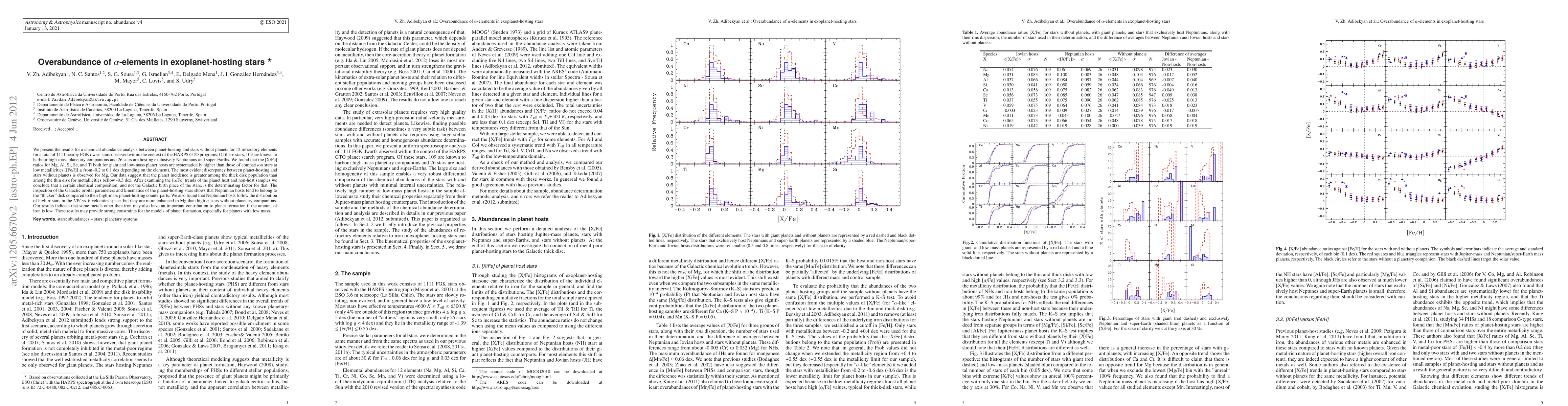 We present the results for a chemical abundance analysis between planet-hosting and stars without planets for 12 refractory elements for a total of 1111 nearby FGK dwarf stars observed within the context of the HARPS GTO programs. Of these stars, 109 are known to harbour high-mass planetary companions and 26 stars are hosting exclusively Neptunians and super-Earths. We found that the [X/Fe] ratios for Mg, Al, Si, Sc, and Ti both for giant and low-mass planet hosts are systematically higher than those of comparison stars at low metallicities ([Fe/H] < from -0.2 to 0.1 dex depending on the element). The most evident discrepancy between planet-hosting and stars without planets is observed for Mg. Our data suggest that the planet incidence is greater among the thick disk population than among the thin disk for mettallicities bellow -0.3 dex. After examining the [alpha/Fe] trends of the planet host and non-host samples we conclude that a certain chemical composition, and not the Galactic birth place of the stars, is the determinating factor for that. The inspection of the Galactic orbital parameters and kinematics of the planet-hosting stars shows that Neptunian hosts tend to belong to the "thicker" disk compared to their high-mass planet-hosting counterparts.We also found that Neptunian hosts follow the distribution of high-alpha stars in the UW vs V velocities space, but they are more enhanced in Mg than high-alpha stars without planetary companions. Our results indicate that some metals other than iron may also have an important contribution to planet formation if the amount of iron is low. These results may provide strong constraints for the models of planet formation, especially for planets with low mass.