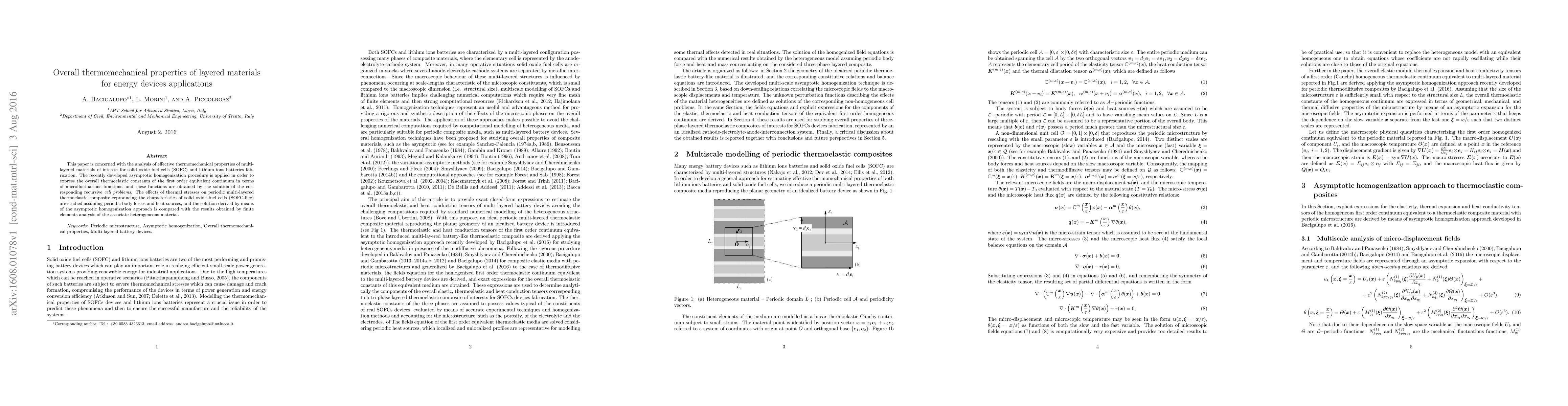Researchers studied the thermomechanical properties of layered materials for energy devices, using a new homogenization procedure to analyze thermal stresses in multi-layered composites that mimic solid oxide fuel cells.