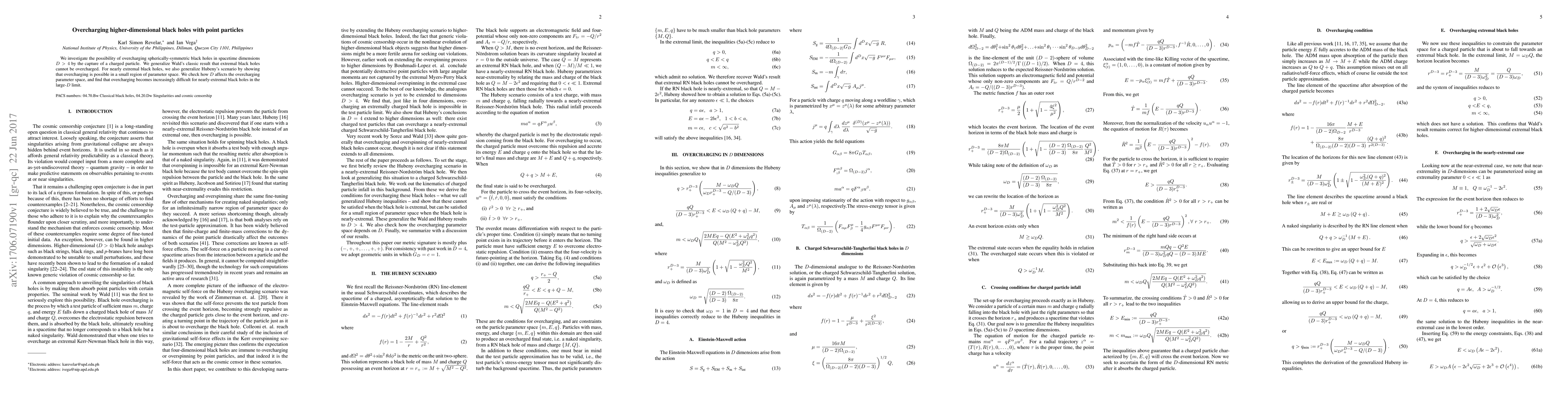 This paper explores the potential to overcharge higher-dimensional black holes with charged particles, demonstrating that while extremal black holes cannot be overcharged, nearly extremal ones can in certain parameter spaces, with the feasibility decreasing as dimensionality increases.