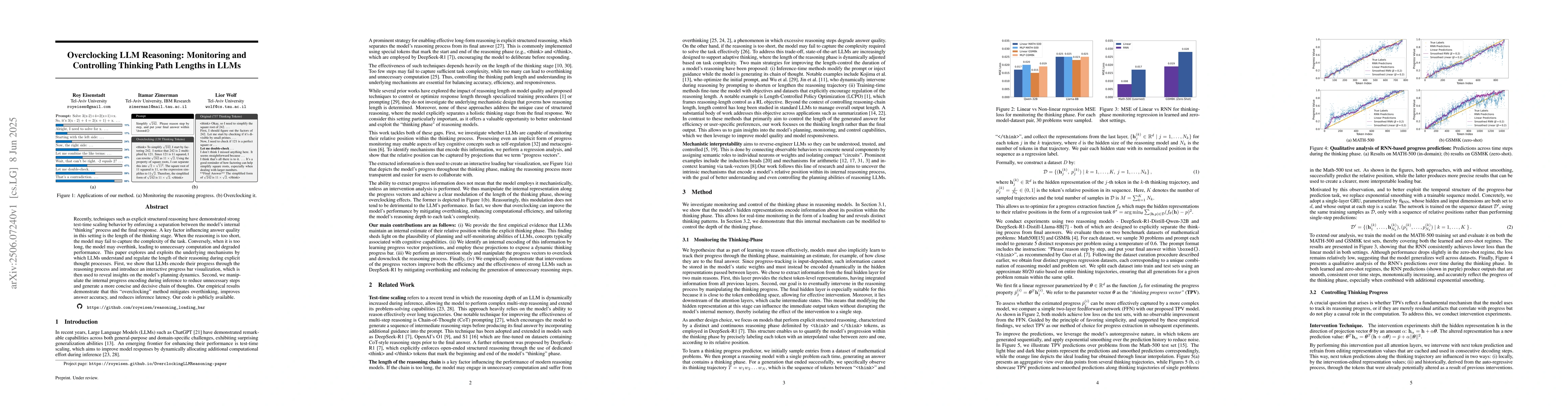 Recently, techniques such as explicit structured reasoning have demonstrated strong test-time scaling behavior by enforcing a separation between the model's internal "thinking" process and the final response. A key factor influencing answer quality in this setting is the length of the thinking stage. When the reasoning is too short, the model may fail to capture the complexity of the task. Conversely, when it is too long, the model may overthink, leading to unnecessary computation and degraded performance. This paper explores and exploits the underlying mechanisms by which LLMs understand and regulate the length of their reasoning during explicit thought processes. First, we show that LLMs encode their progress through the reasoning process and introduce an interactive progress bar visualization, which is then used to reveal insights on the model's planning dynamics. Second, we manipulate the internal progress encoding during inference to reduce unnecessary steps and generate a more concise and decisive chain of thoughts. Our empirical results demonstrate that this "overclocking" method mitigates overthinking, improves answer accuracy, and reduces inference latency. Our code is publicly available.
