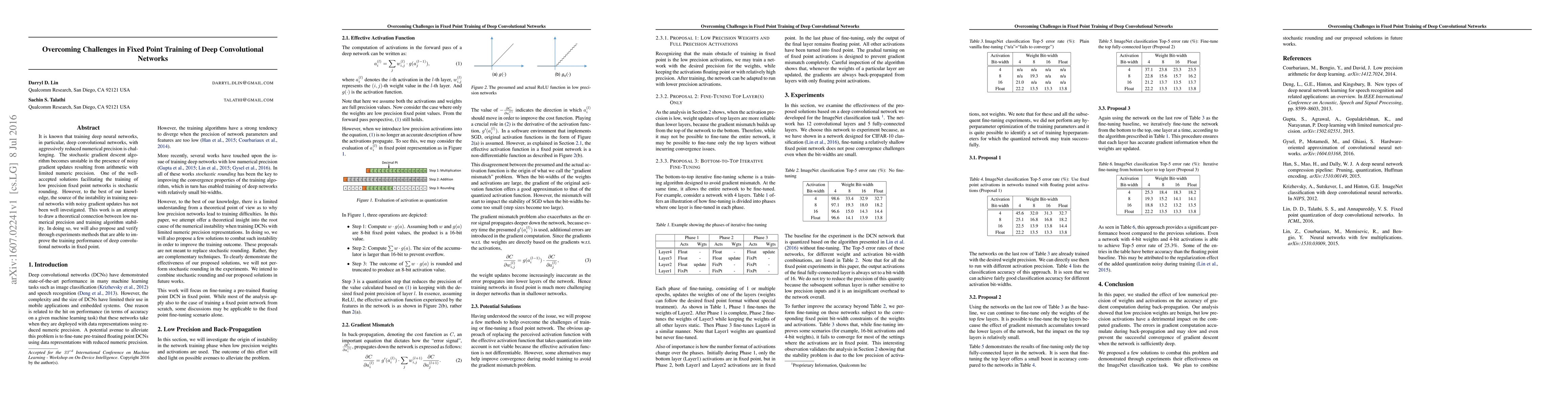 This paper investigates the challenges of training deep convolutional networks with reduced numerical precision, focusing on the instability caused by noisy gradient updates. It proposes a theoretical framework linking low precision and training stability, and introduces methods, including stochastic rounding, to enhance the performance of fixed point training.