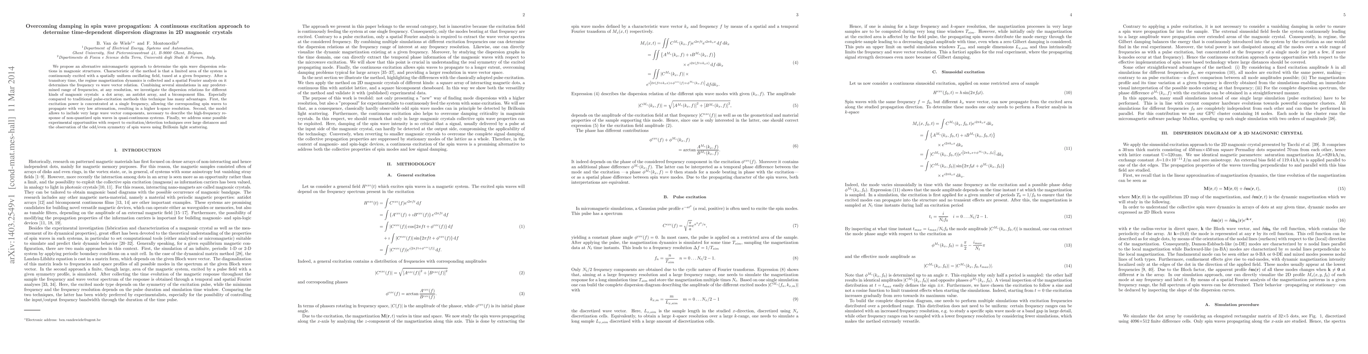 We propose an alternative micromagnetic approach to determine the spin wave dispersion relations in magnonic structures. Characteristic of the method is that a limited area of the system is continuously excited with a spatially uniform oscillating field, tuned at a given frequency. After a transitory time, the regime magnetization dynamics is collected and a spatial Fourier analysis on it determines the frequency vs wave vector relation. Combining several simulations in any predetermined range of frequencies, at any resolution, we investigate the dispersion relations for different kinds of magnonic crystals: a dot array, an antidot array, and a bicomponent film. Especially compared to traditional pulse-excitation methods this technique has many advantages. First, the excitation power is concentrated at a single frequency, allowing the corresponding spin waves to propagate with very low attenuation, resulting in a higher k-space resolution. Second, the model allows to include very large wave vector components, necessary to describe the high-frequency response of non-quantized spin waves in quasi-continuous systems. Finally, we address some possible experimental opportunities with respect to excitation/detection techniques over large distances and the observation of the odd/even symmetry of spin waves using Brillouin light scattering.