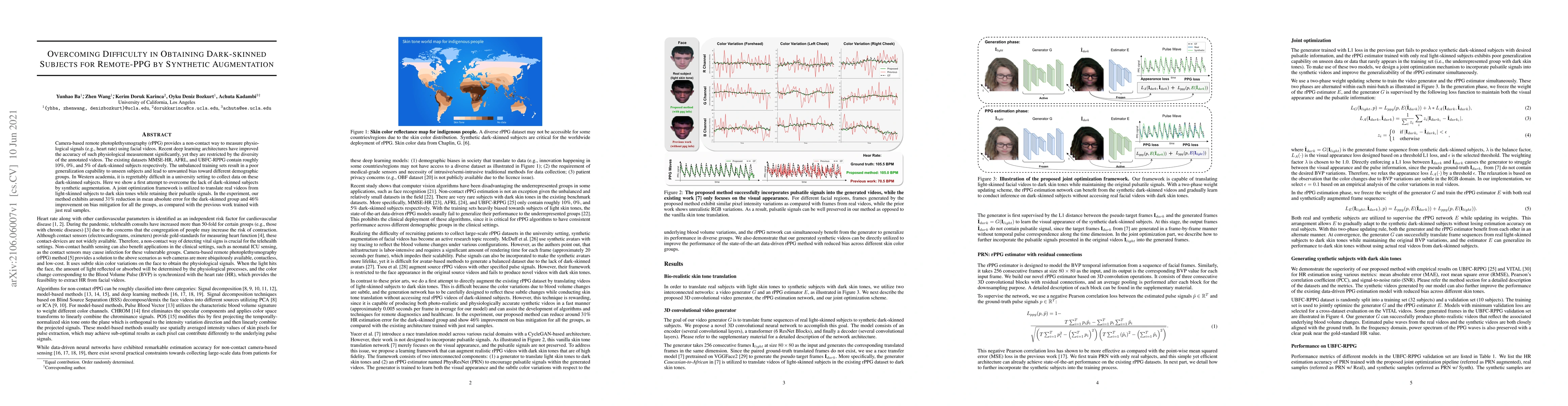 Researchers created a method to generate dark-skinned subjects for remote PPG using synthetic augmentation, improving accuracy and bias mitigation in deep learning models.